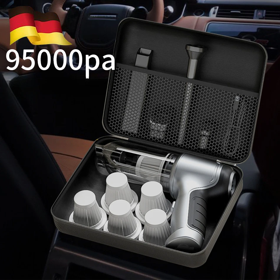 Note:Please charge before use, long press for three seconds to start the machine, and then press again to switch to high gear. Product description: Name: hand-held vehicle vacuum cleaner Color: black grey/silver grey Material: ABS Size: 21 * 16 * 6.5CM Number of gears: 2nd gear adjustment Rated voltage: DC 7.4V/DC 11.1V Vacuum degree: about 13000pa/95000Pa Rated speed: 35500rpm Battery capacity: 2 * 2000mAh Charging mode: 5V USB boost charging cable Rated power: 120W Noise: ≤ 52dB Operating temperature: - 20 ℃~+50 ℃ Product functions:mainly cleaning cars, vacuuming, blowing dust, blowing balloons and so on Product configuration: Basic: 13000Pa vacuum cleaner host * 1, long suction nozzle * 1, flat suction nozzle * 1, coarse suction nozzle * 1, small suction nozzle * 1, charging wire * 1, filter element * 1 Basic 2HEPA: 13000Pa vacuum cleaner host * 1, long suction nozzle * 1, flat suction nozzle * 1, coarse suction nozzle * 1, small suction nozzle * 1, charging wire * 1, filter element * 3 Basic 5HEPA Box:13000Pa vacuum cleaner host * 1, long suction nozzle * 1, flat suction nozzle * 1, coarse suction nozzle * 1, small suction nozzle * 1, charging wire * 1, filter element * 6,EVA BOX*1 Updated PRO(German brushless motor): 95000Pa vacuum cleaner host * 1, long suction nozzle * 1, flat suction nozzle * 1, coarse suction nozzle * 1, small suction nozzle * 1, charging wire * 1, filter element * 1 Updated PRO 2HEPA(German brushless motor): 95000Pa vacuum cleaner host * 1, long suction nozzle * 1, flat suction nozzle * 1, coarse suction nozzle * 1, small suction nozzle * 1, charging wire * 1, filter element * 3 Updated PRO 5HEPA Box(German brushless motor): 95000Pa vacuum cleaner host * 1, long suction nozzle * 1, flat suction nozzle * 1, coarse suction nozzle * 1, small suction nozzle * 1, charging wire * 1, filter element * 6,EVA BOX*1 Comfortable mute use without disturbing Powerful performance but steady voice 1.Optimization of air duct-reducing wind resistance and noise 2.Tight Engagement of Components-Reducing Vibration Noise 3.GEDE BAO Noise Reduction Composite Cotton--Reducing Rotor Vibration Sound 4.Optimization of exhaust pipe-reducing exhaust howling 5.Dynamic balance noise reduction-reducing rotor vibration sound 6.Optimal noise reduction of impeller-reducing air resistance and noise 7.Motor suspension design-reducing resonance noise 8.Motor equipped with brushless motor-reducing rotor friction noise Long-lasting battery life can easily clean up the hygiene in the home car. Dual-core frequency conversion chip can easily handle the cleaning in the car and at home, reasonably release the current under the monitoring and adjustment of intelligent power supply management system, and cooperate with air cooling system to ensure the continuous and excellent operation of battery pack, which can complete the cleaning of a larger area at one time.