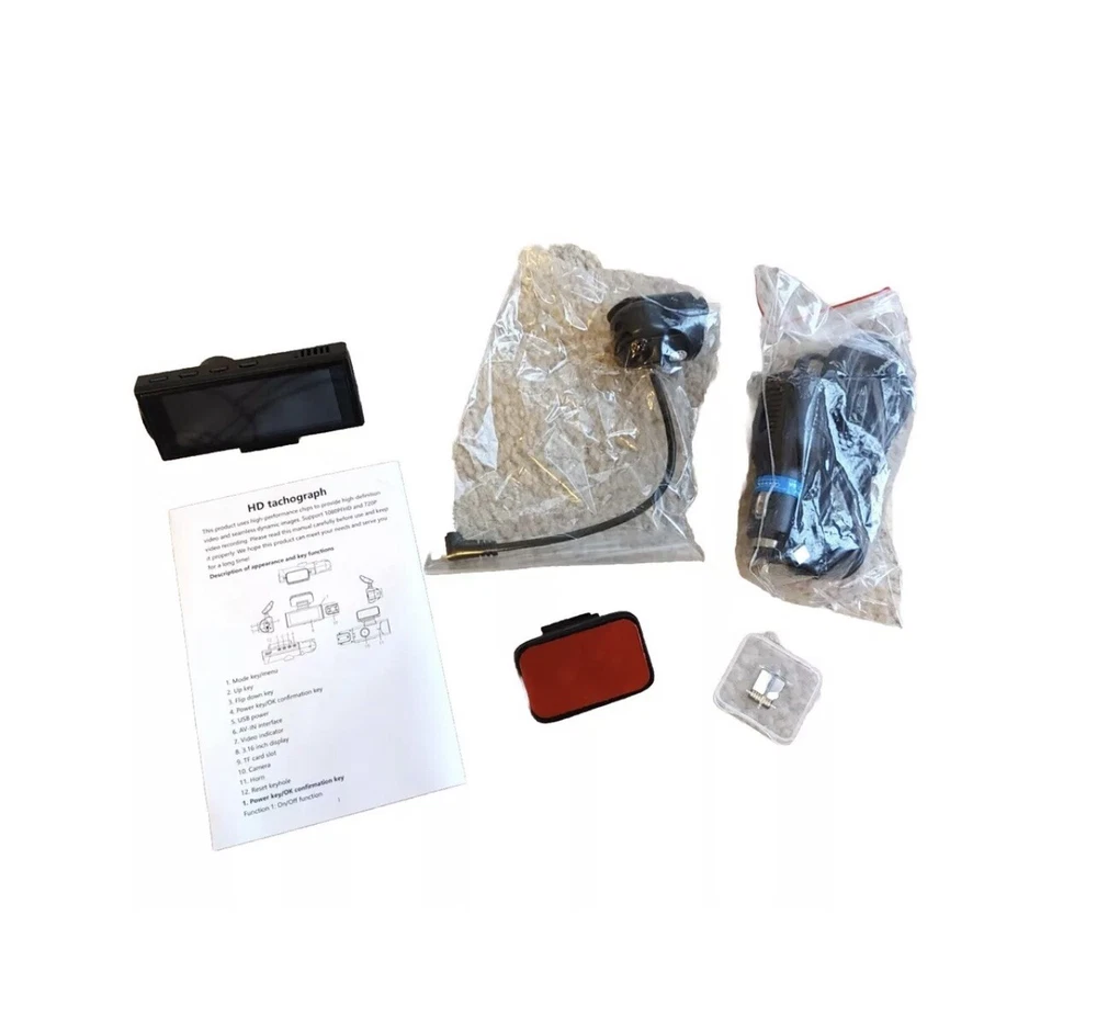 The CarDVR Video Camera M8 is a new open box product that comes with a 3.16 inch display and an SD card. It is a tachograph that records in Full HD and has one camera. The product is black in color. Brand NEW