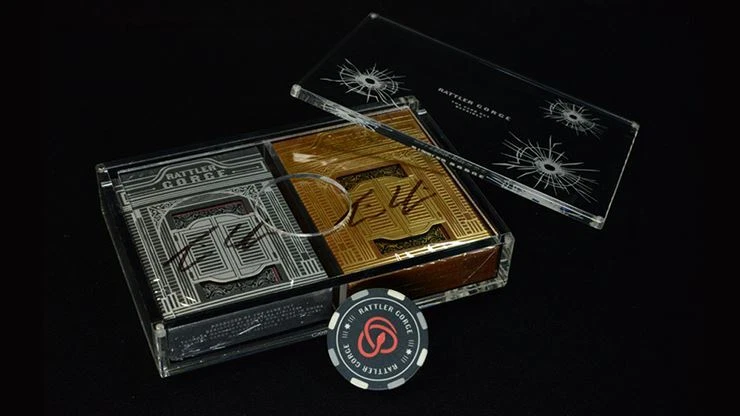 Please note: We only sell genuine playing cards from bonafide manufacturers. Introducing the Carat CI2-39 Coin Insert for two or four deck combination Carat Cases, which allows you to display your decks along with a 39mm diameter coin. The Carat Case CI2 Coin Inserts are 3mm acrylic plates with a circular cutout to hold a coin in place when displayed inside a Carat Case. The Carat CI2 comes in five different coin sizes: 38mm (1.5in), 39mm, 40mm, 44.5mm (1.75in) and 51mm (2.0in) diameter. A slightly smaller case insert/divider is also provided with the Carat CI2 to replace the standard insert/divider that comes with the Carat Case X2 or X4. The standard insert/divider has a width of 2.1mm, which protrudes above the decks and prevents the coin from lying flat on top of the decks, while the insert/divider included with the Carat CI2 has a width of 1.8mm. Carat Card Cases by Carat Case Creations are the preferred playing card storage and display cases of discriminating collectors, designers and playing card manufacturers. Carat Case Creations has worked with many of the top designers and companies to create custom cases, including Butterfly Playing Cards, Cartamundi, Chris Ovdiyenko, Expert Playing Card Co, Jackson Robinson, Lee Asher, Midnight Playing Cards, Mint Playing Cards, Rick Davison, Stockholm 17, Thirdway Industries, Tru-Card and USPCC. PRODUCT SPECIFICATIONS Materials used: 3mm archival quality clear acrylic Dimensions: Coin insert: 9.3 x 13.3cm with a 39mm diameter circular cutout in the center Case inserts: 9.3 x 1.8cm PLEASE NOTE Coins and decks come in varying thicknesses and the combination of the two might be too thick to display in a Carat Case. The best way to see if your coin and deck will work is to put a deck inside a case and the coin on top of it. If the lid closes normally, then it is OK, but if the lid doesn't close completely or properly, it most likely won't work and it's best not to try and force it. Coins aren't always the exact size that the creator states and sometimes the coin is larger than its stated size, in which case, the coin might be a little tight in the insert ____________________________________________________________________________________________ Are you ready to elevate your poker game with original playing cards? Visit our store today to browse our selection of authentic decks and start playing like a pro. Remember, when it comes to poker and other card games, we only sell original cards from genuine sources. Experience the difference for yourself and take your gameplay to new heights with premium quality playing cards.