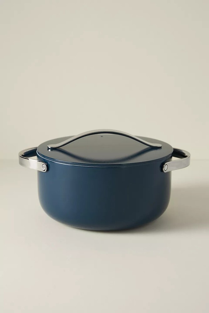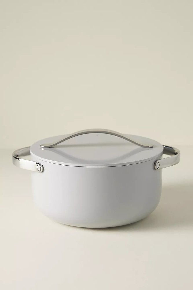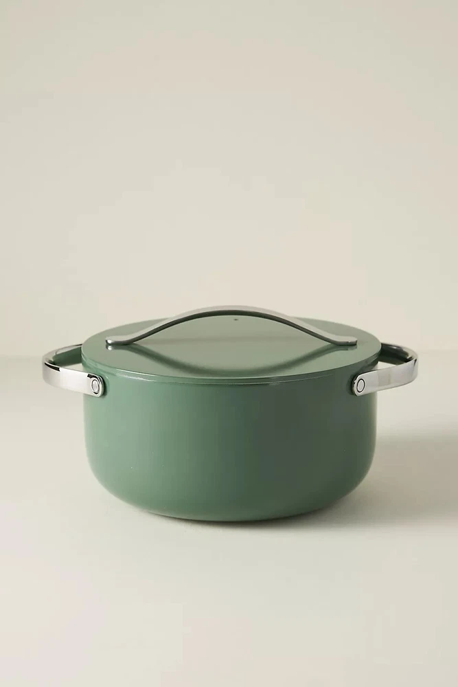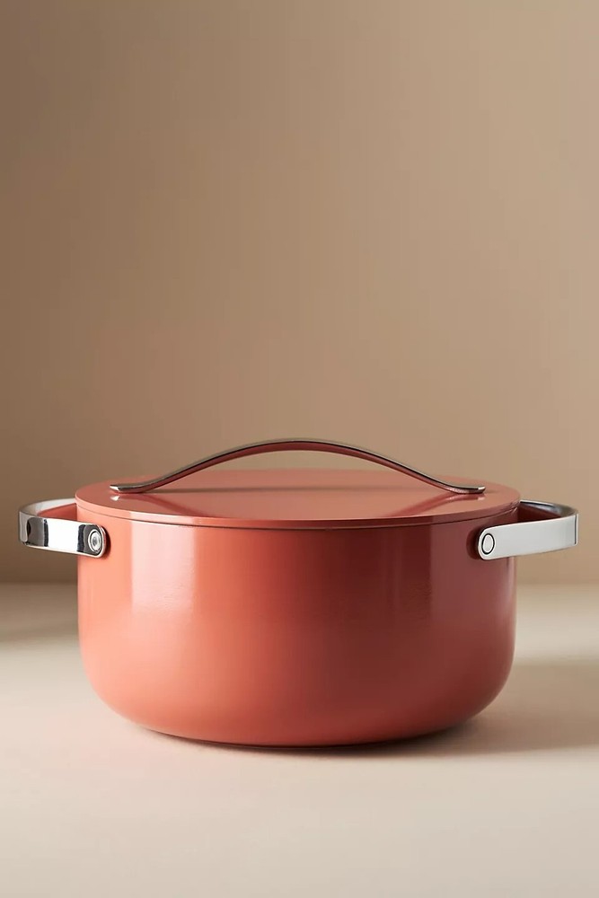 Style No. 89283204; Color Code: 083 Caraway's ceramic Dutch Oven Pot allows for healthy cooking in the kitchen without harmful chemicals: use for stews, bread baking, and more. Featuring a non-toxic ceramic-coated interior, this durable non-stick pot makes cooking easier than ever, cleaning (dare we say) enjoyable, and adds a pop of color to any home. Ceramic-coated aluminum, aluminized steel Non-stick Hand wash; dry thoroughly before storage Not dishwasher or microwave safe Oven safe up to 550°F Imported Dimensions 6.5 quart 10.5" diameter