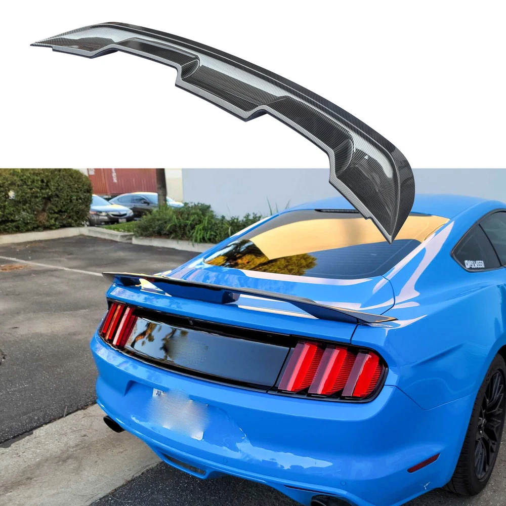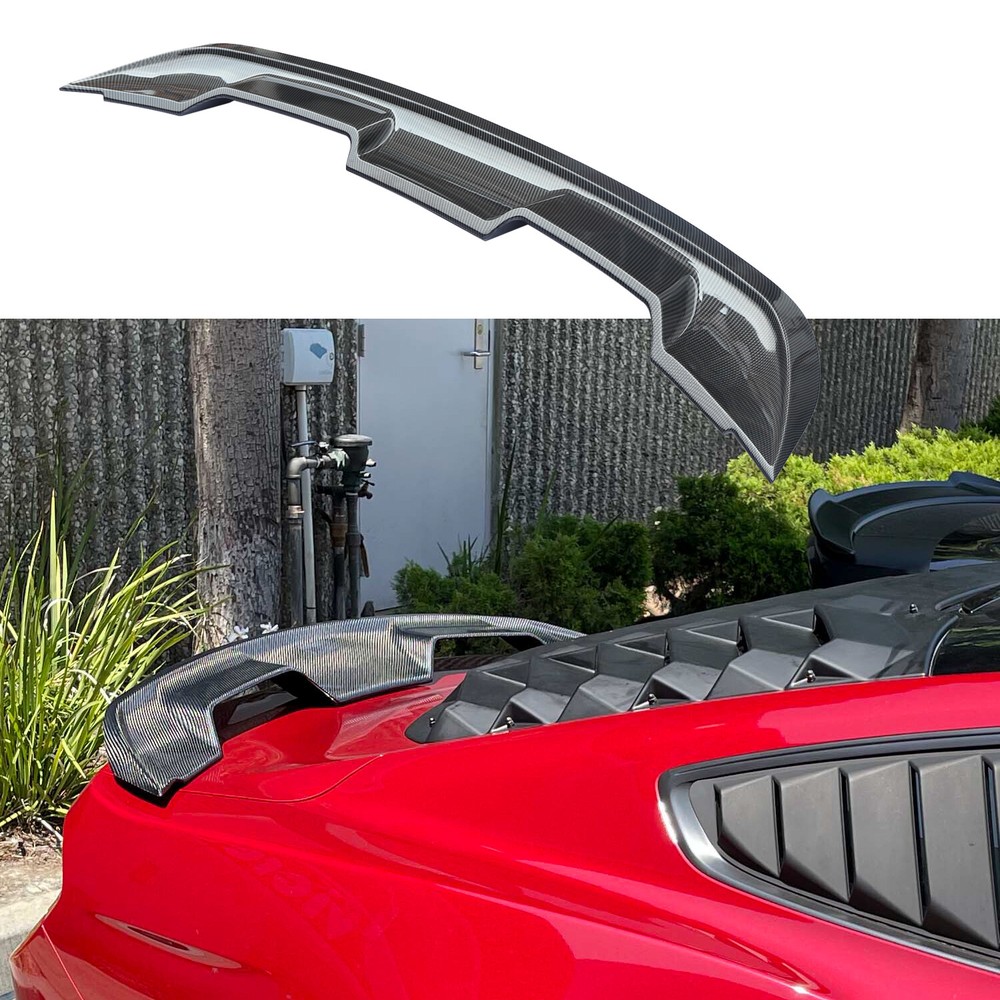This spoiler instantly upgrades the Mustang's aggressive stance with its sleek carbon fiber look and smooth curves. The ABS material feels durable yet lightweight, and it fits perfectly on my GT without any gaps. Installation was straightforward with the included tape and screws—no wobbling at high speeds. Love how it adds a sporty touch while improving stability. Definitely worth it for the price!