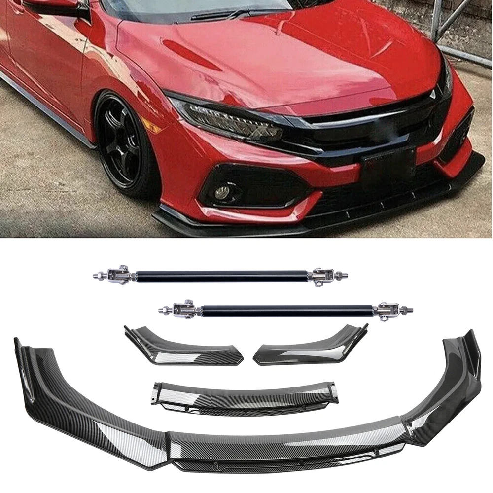 Interchange Part Number: Chin-Diffuser-Front-Bumper-Splitter Items Included: Mounting Hardware Placement on Vehicle: Front, Left, Right Type: Front Bumper Cover Lip Front Spoiler Warranty: Yes Features: Double Layer,Adjustable Angle!!!Universal Fit Brand: Unbranded Custom Bundle: Yes Manufacturer Part Number: Does Not Apply Modified Item: Yes Attachment Method: Bolts,Rivets,Screws Mounting Hardware Included: Yes Color: Carbon Fiber Black Fitment Type: Performance/Custom Superseded Part Number: Chin-Diffuser-Front-Bumper-Splitter Other Part Number: 4pcs Front Bumper Lip Body Kit Spoiler + 2pcs Strut Rods Surface Finish: Painted Material: High quality ABS Polyurethane Number of Pieces: 4+2 Bumper Lip Length: 75 inch Weight: about 2200 g
