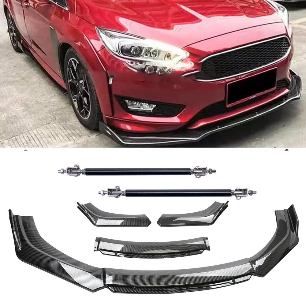 Carbon Fiber Black Front Bumper Lip Chin Body Kit For Ford Focus 10-18 Strut Rod