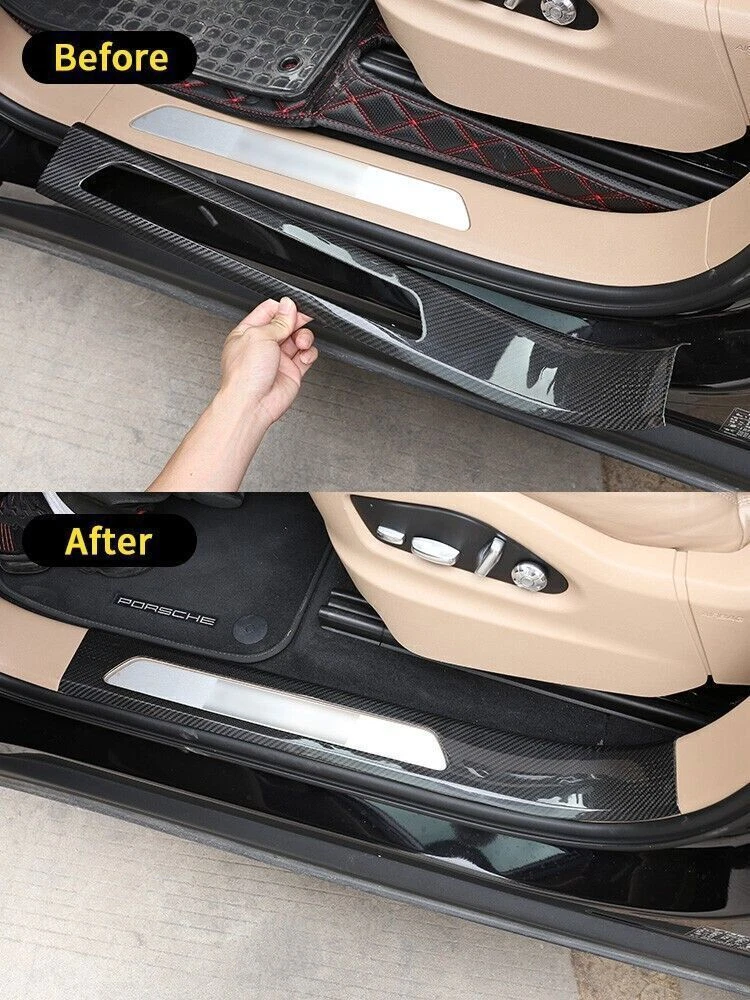 Universal Fitment: No Color: Black UPC: Does not apply Features: Easy Installation gtin13: Does not apply Placement on Vehicle: Door Sill Threshold Protector Scuff Plate Material: Carbon Fiber Brand: Unbranded