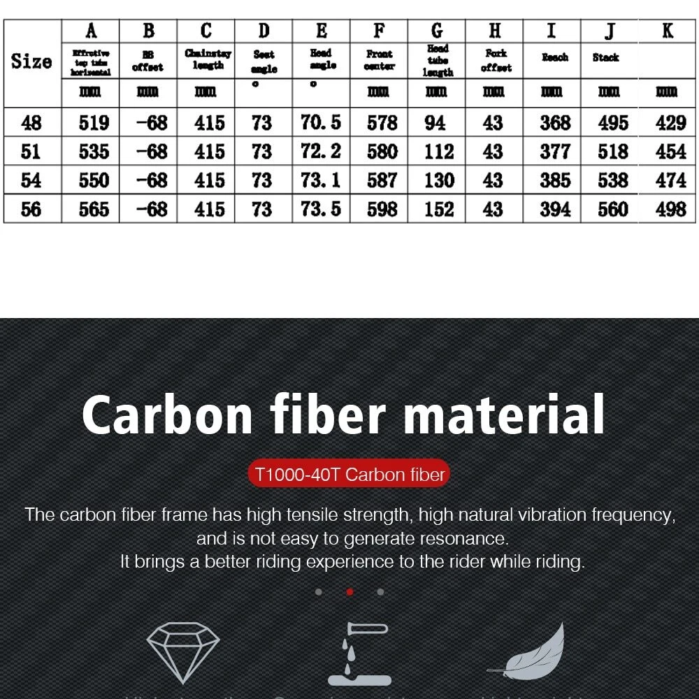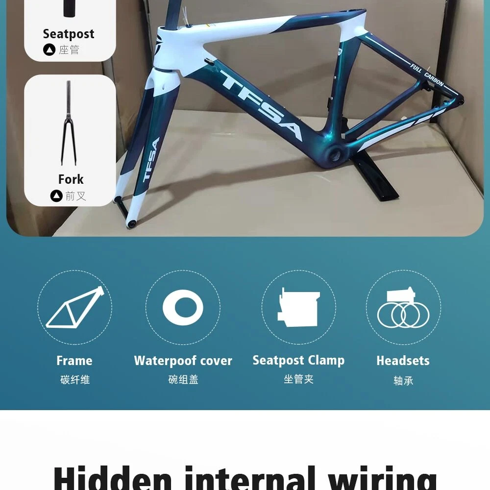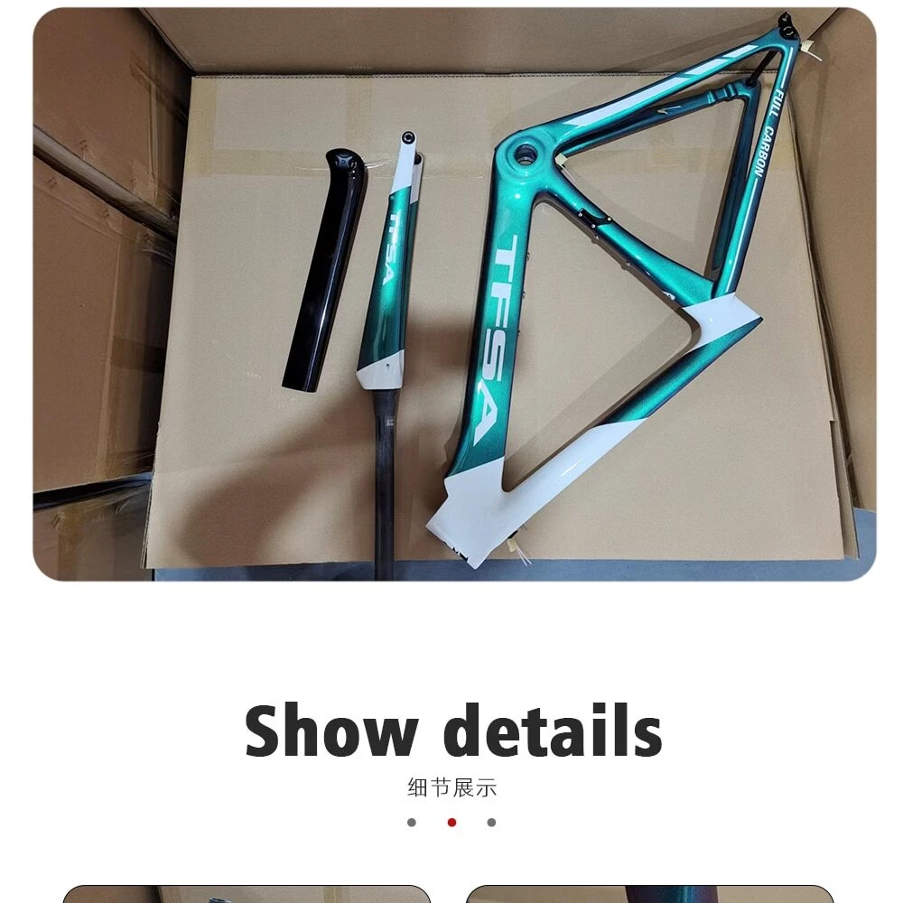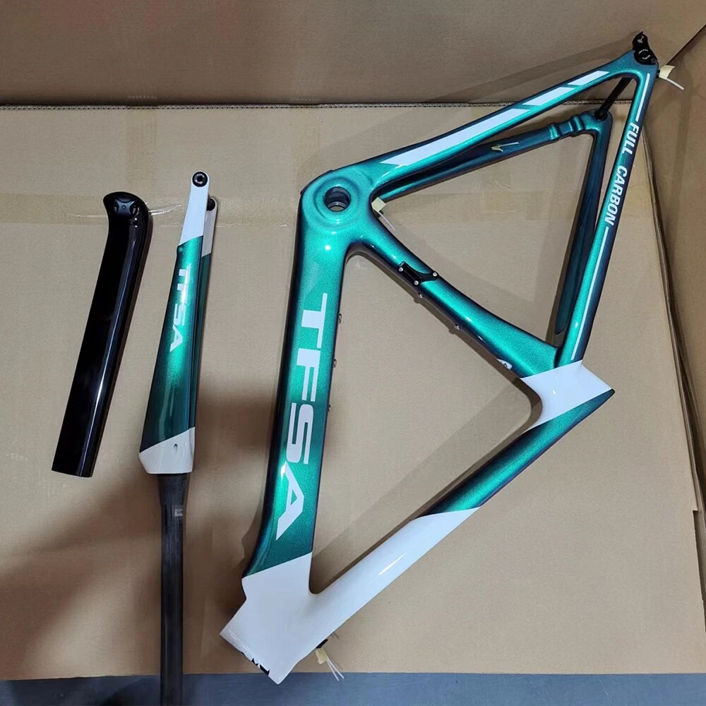 1. Bottom bracket: BB68 2 Brake: Disc brake 3. Weight: 1180g 4. Size:48-51-54-56cm available 5. Material: T1000 carbon yarn 6. Color: a lot, contact business 7. Accessories: Fork + Seat Tube + Wrist Set + Frame+Coaxial rod Company Profile Dongguan Bangzhi Sports Goods Co., Ltd. was founded in 2010, currently located in Jinping Industrial Zone, Shishou City, Jingzhou city, focusing on carbon fiber bicycles, bike accessories and other related sports goods. We have a professional R & D and production team, providing one-stop service from R & D, weaving, pre-molding, molding, filling, painting, vehicle assembling to logistics, and providing customers with quality product solutions. In order to serve customers better, in 2019, we set up two branches of Huizhou Zhihe Sports Equipment Co., LTD and Huizhou Huazhong Sports Goods Co., LTD. At present, our plant has an expanded area of about 10000m2, where there are more than 600 employees and an annual output of 40K, effectively making up for the lack of quality control and production capacity. We attach importance to the protection of intellectual property, and have registered brand TFSA in 2015 in many countries. Our products have appearance patents or practical patents, which can better protect the online customers. At the same time, we also follow the rules of environmental protection, and make continuous efforts to keep innovation, to improve product competitiveness and to create a better quality of life for the society. Looking forward to traveling with you in the future!