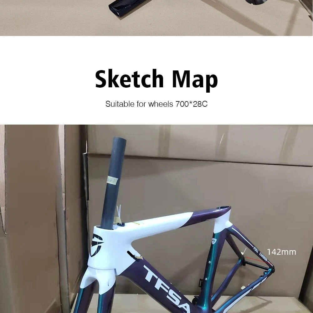 1. Bottom bracket: BB68 2 Brake: Disc brake 3. Weight: 1180g 4. Size:48-51-54-56cm available 5. Material: T1000 carbon yarn 6. Color: a lot, contact business 7. Accessories: Fork + Seat Tube + Wrist Set + Frame+Coaxial rod Company Profile Dongguan Bangzhi Sports Goods Co., Ltd. was founded in 2010, currently located in Jinping Industrial Zone, Shishou City, Jingzhou city, focusing on carbon fiber bicycles, bike accessories and other related sports goods. We have a professional R & D and production team, providing one-stop service from R & D, weaving, pre-molding, molding, filling, painting, vehicle assembling to logistics, and providing customers with quality product solutions. In order to serve customers better, in 2019, we set up two branches of Huizhou Zhihe Sports Equipment Co., LTD and Huizhou Huazhong Sports Goods Co., LTD. At present, our plant has an expanded area of about 10000m2, where there are more than 600 employees and an annual output of 40K, effectively making up for the lack of quality control and production capacity. We attach importance to the protection of intellectual property, and have registered brand TFSA in 2015 in many countries. Our products have appearance patents or practical patents, which can better protect the online customers. At the same time, we also follow the rules of environmental protection, and make continuous efforts to keep innovation, to improve product competitiveness and to create a better quality of life for the society. Looking forward to traveling with you in the future!