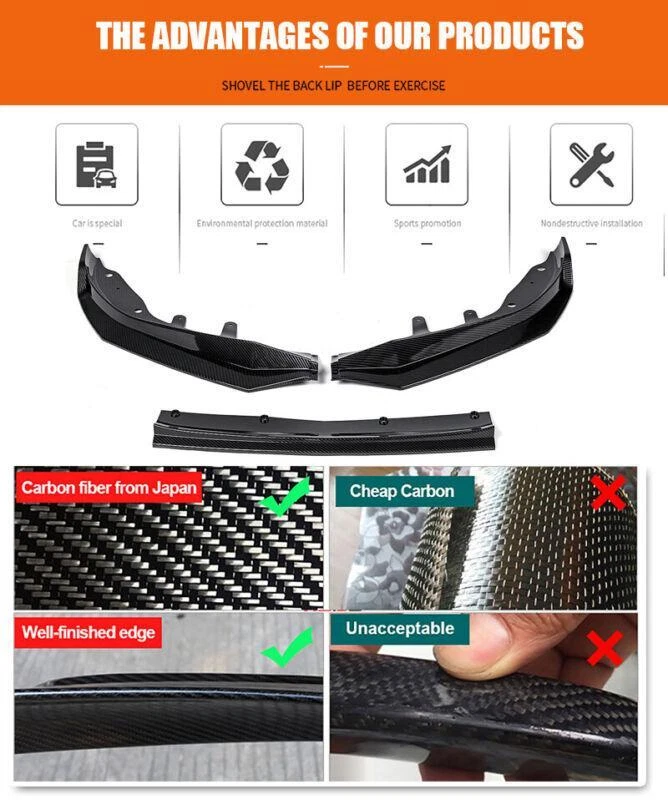 Fitment: Fit for BMW 4 Series G22 G23 440i Coupe Convertible M-Sport 2 Door 2021-2022 Specifications: Product Name: Front Bumper Lip Material: Carbon Fiber Package Size: 145*53*15cm Package Weight: 5.0kg Features: • Made of High Quality Lightweight Real Carbon Fiber. • Does not affect the height of the car chassis. • Prevent the front of the car from scratching. • Waterproof, anti-corrosion, abrasion resistance, high temperature resistance. • Beautiful appearance design, make the car look cool and new. Package included: • Car Front Lip Bumper Body Kits with self-adhesive glue tape and screws. Carbon Fiber Front Bumper Lip FOR BMW The Front Bumper Lip is one of the simplest mods you can do to the exterior of your car that will give your car that completely different look. Not only are spoilers meant for great looks, they also help Prevent the front of the car from scratching. Fitment: Fit for BMW 4 Series G22 G23 440i Coupe Convertible M-Sport 2 Door 2021-2022 Specifications: Product Name: Front Bumper Lip Material: Carbon Fiber Package Size: 145*53*15cm Package Weight: 5.0kg Features: • Made of High Quality Lightweight Real Carbon Fiber. • Does not affect the height of the car chassis. • Prevent the front of the car from scratching. • Waterproof, anti-corrosion, abrasion resistance, high temperature resistance. • Beautiful appearance design, make the car look cool and new. Package included: • Car Front Lip Bumper Body Kits with self-adhesive glue tape and screws. Delivery details Payment and TAX Return Policy Warranty Contact us Delivery details NOTE: The shipping fee is only for the mainland of each country, it does not include the overseas territories, such as Virgin Islands (U.S.) , Puerto Rico, Hawaii , French Reunion Island, etc. But on ebay, when buyers from Puerto Rico and overseas territories , the shipping fee is equal to United States, it is NOT correct,. please contact us for correct shipping fee, or we will cancel the order. Sorry for the inconvenience, and thanks for your cooperation. 1. Item will be shipped in 10 days, most within 2 days.usually it takes 7-30 days in transit to most countries. 2. If you want to upgrade the shipping, please contact us before making payment, we will revise the shipping fee. 3. We will ship according to your Ebay address. Please make sure it is correct and include phone number for delivery. If you have any questions , please contact us, we would do our best to serve you solve the problem. Payment and TAX 1.We accept Multiple Payment Methods Available: Credit Card, Debit Card, Gift Card, Apple Pay, Goggle Pay, PayPal and PayPal Cred. 2.Please leave note for your special request (e.g. Colors or Size) in ebay note when you pay the order. 3.Your must complete the payment within 7 days or Ebay will automatically open unpaid item case For US Buyer:The invoice value of each item is less than 800USD ,so you no need to pay any tariff . NON-US Buyer Note: Most countries are tax free based on our invoices, if tax is required, which will be buyer's responsibility. Return Policy 1.Customer satisfaction is our top goal. We believe our items are so outstanding. All products are quality checked. They are new and in good condition when shipped to our customers. We are convinced you will be happy with your Purchase. 2.If product is defective or damage upon arrival, or wrong product shipped, please contact us immediately. Returns accepted within 30 days of delivery date and item must be in original new condition, not worn or altered in any way with attached tags & wrap. Otherwise deal is final. Return shipping must be paid by buyer. Please always contact us to resolve any problems, we will do our best to satisfy you. Thanks very much. Warranty 30 Days Money Back It is our goal to provide 100% satisfaction and peace of mind to our customers. If you are not satisfied with the products for any reason within 30 days of receiving the item. (Items must be not opened in their original package. Any mark of installation, mounting, cutting, scratch or using will not be allowed.) Please be free to contact us first if you have any problems.thanks. Contact us 1.We are trying our best to explain all details of the products here! If you have any question, please feel free to contact us by Ebay message, and We will get back to you within 24-48 hours. 2.Customer satisfaction is our NO.1 priority. If you are not happy with the item that you purchase, please contact us first. We will try our best to solve the problem with you.Please leave us a positive feedback if you receive the item.Please do not leave negative or neutral feedback without any contact.If you haven't received item in 30 days, please contact us and we will arrange refund.We appreciate your business.Happy Bidding & Have a nice day! 3.Working hours: From 8 a.m. to 6 p.m. from Monday to Friday. From 8 a.m. to 12 a.m. on Saturday morning Holiday/Rest time: Saturday afternoon and Sunday