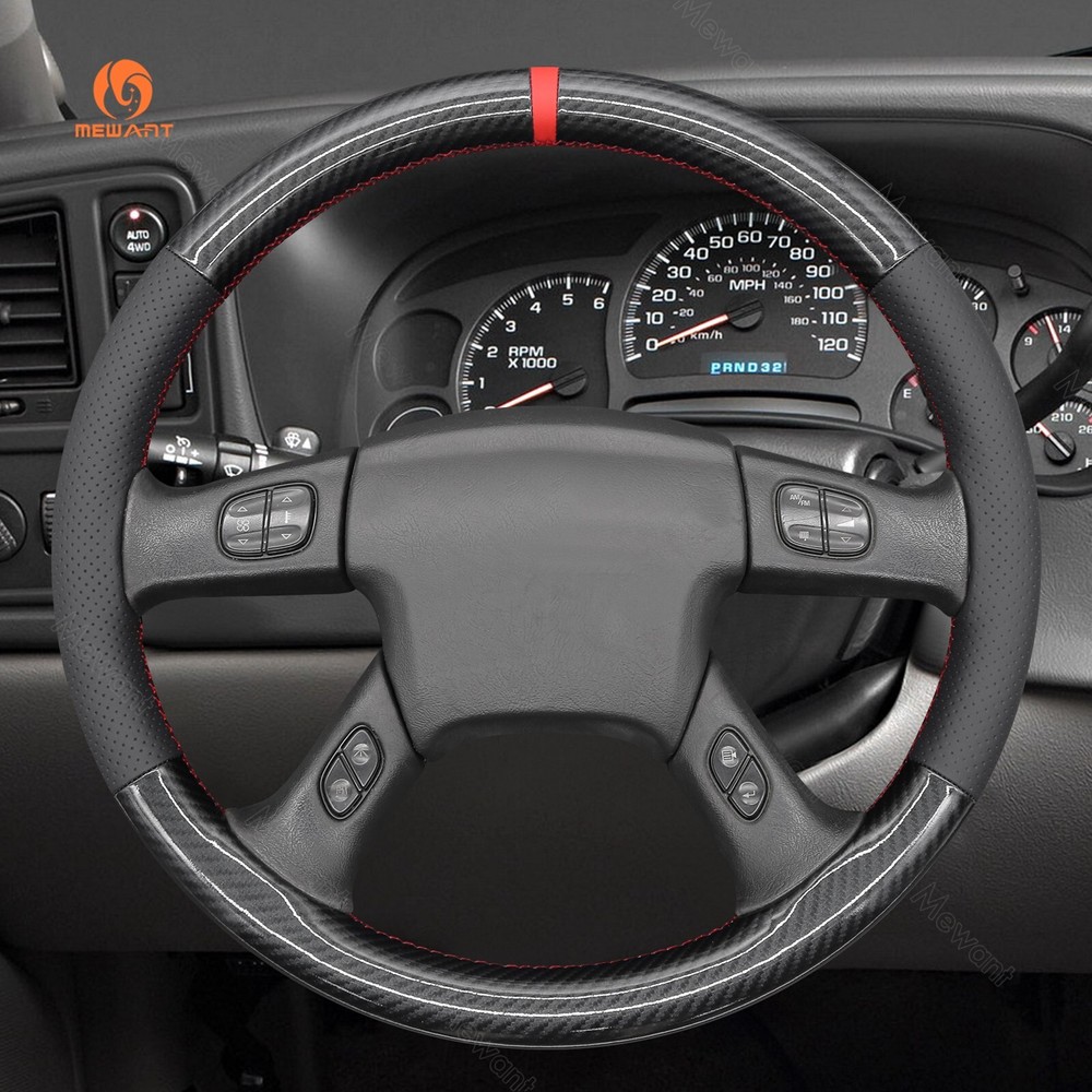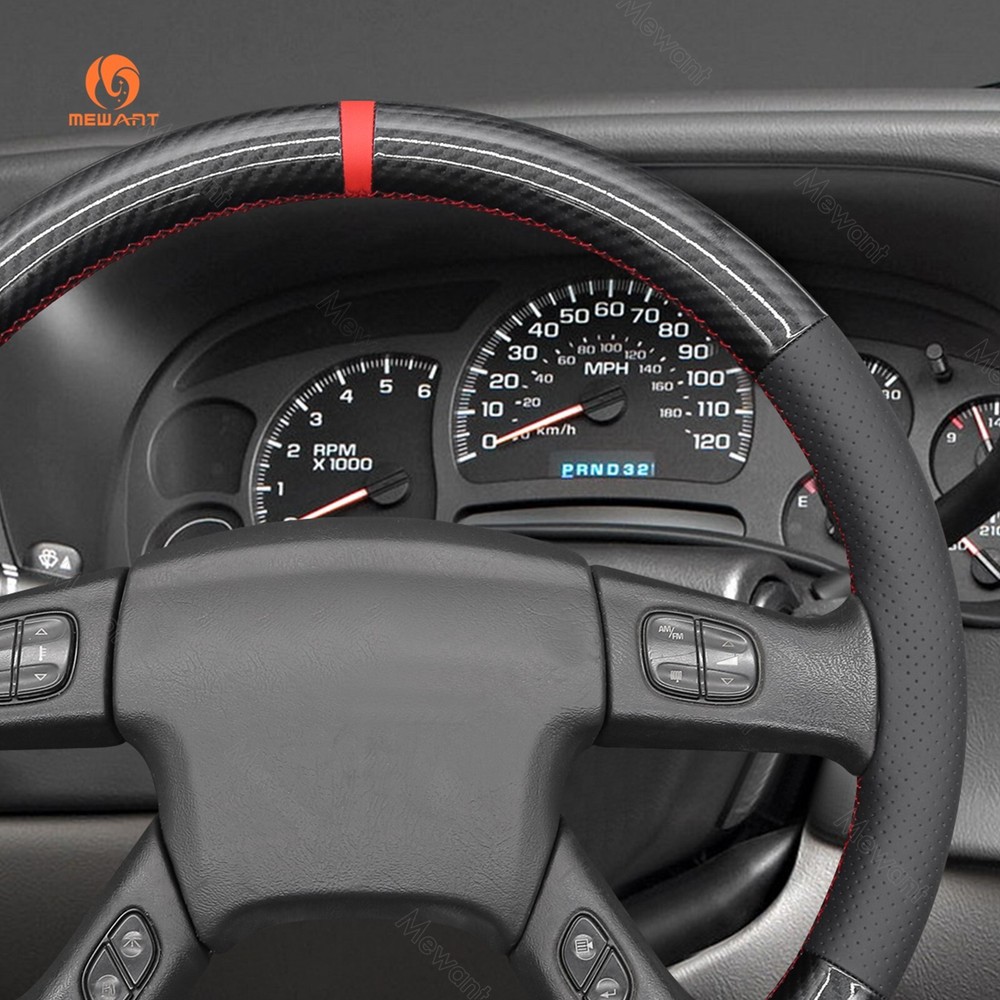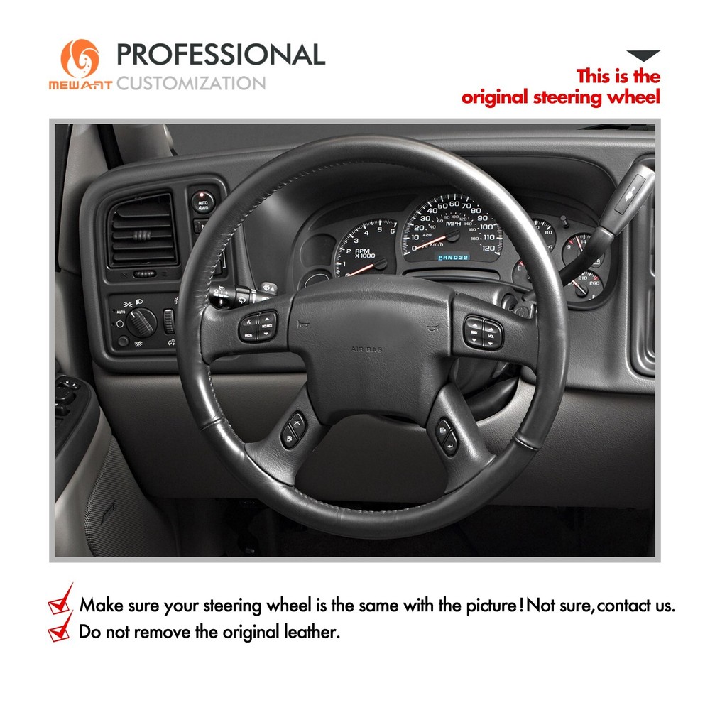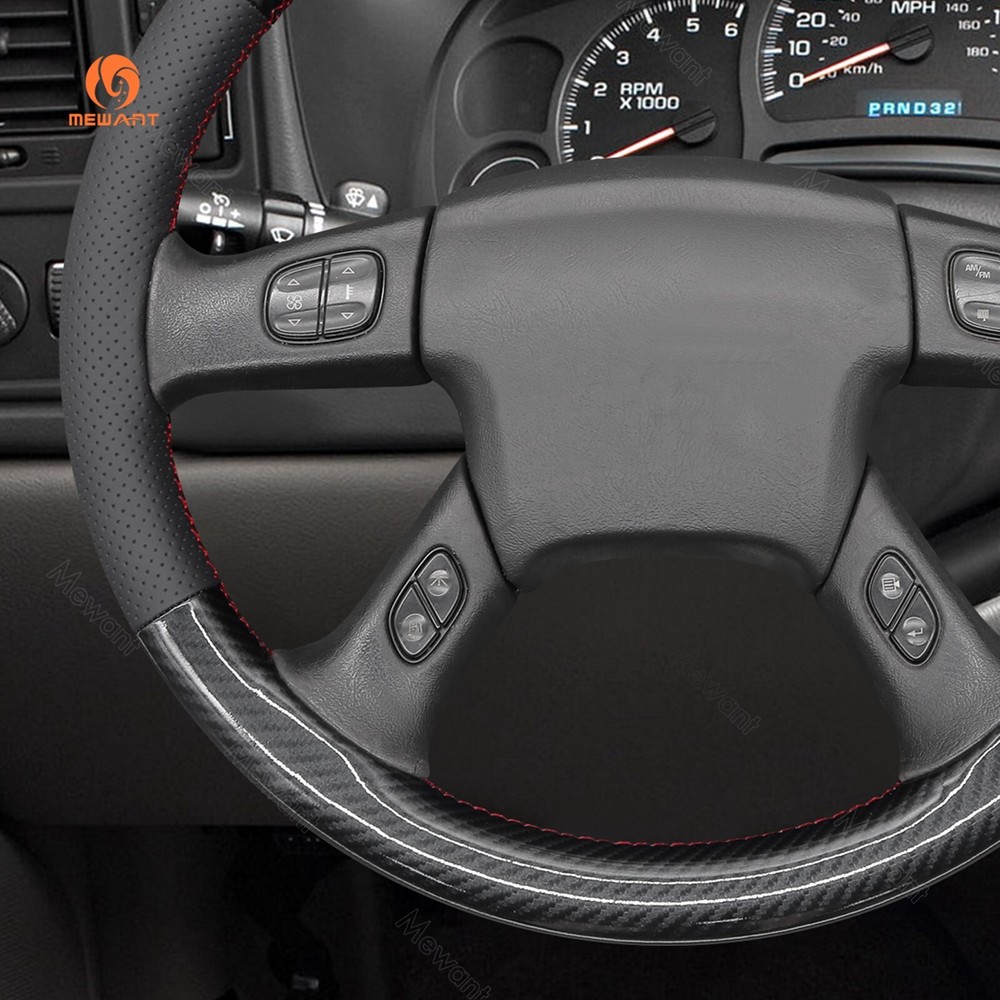 Real Leather Carbon Fiber Steering Wheel Cover for Chevrolet Silverado 2003-2007 ONE Car ONE Template Factory buy brand new steering wheels from all over the world, to make the templates which could 100% fit the corresponding car model. Personalized customization Many colors of thread and material for choose to customize. According to the colors and materials you could customize a new style cover. Multiple protection With soft PU leather, guarantee a good grip while driving. With 100% fit Mewant cover, it won’t slip while driving. The Original Steering Wheel: NOTICE This cover Suitable car model: for Chevrolet (Chevy) Silverado 1500 2003-2006 / Silverado 1500 Classic 2007 / Silverado 2500 2003-2006 / Silverado 2500HD Classic 2007 / Silverado 3500 2003-2006 / Silverado 3500 Classic 2007 / TrailBlazer 2002-2009 for GMC Sierra 1500 2003-2006 / Sierra 1500 Classic 2007 / Sierra 2500 2003-2006 / Sierra 2500HD Classic 2007 / Sierra 3500 2003-2006 / Sierra 3500 Classic 2007 / Sierra 3500 CC Classic 2007 / Envoy 2002-2009 / Envoy XL 2002-2006 / Envoy XUV 2004-2005 / Yukon (Yukon XL) 2003-2006 Suitable car model name and launch year are just a reference, different countries have different model name and launch time, so please pay attention to the steering wheel picture above, make sure they are the same , if not sure, feel free to contact us. Default design: Design elements: A: Red Leather Stripe B+D: Black Glossy PU Carbon Fiber C: Black Perforated Genuine Leather D: Red Thread If you want to change the material or color, please contact our customer service when you order. Feature * Increased Safety :High quality leather, super soft & smooth , non-slip & durable. it provides great grip on the steering wheel, massage your palm and relieve drive fatigue , bring you a great touch and feel . * Top Quality: delicate workmanship, super technology and flat sewing stitches, The steering wheel gloves are the perfect way to transform the look of your vehicles interior while protecting your original steering wheel at the same time from wear and tear. Self-installation Needed: Our steering wheel covers need to stitch by yourselves, the installation tools, video and instructions were provided to assistant, please do NOT remove the original leather before the installation, or it will not fit. Attachment:Needle,thread,double sided tape,yellow small blade