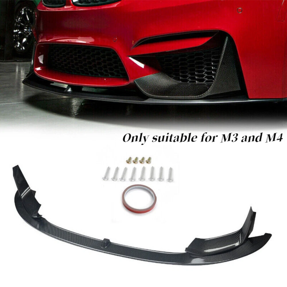 Carbon Fiber Style Front Bumper Lip Splitter Fit BMW F80 M3 F82 F83 M4 2015-2020 Front Bumper Lip Splitter Carbon Fiber Style For 2015-2020 BMW F80 F82 F83 M3 M4 Fitment: Fits 2015-2020 BMW F82 F83 M4 Fits 2015-2019 BMW F80 M3 *Only Fits OEM M3/M4 Bumper. Not Fit Aftermarket or Replica Bumpe. Not suitable for BMW 3 Series or 4 Series. Only suitable for M3 and M4 After the middle part is connected (short screw), it needs to be fixed to the car with screws (long screws) like both sides. Specification: Material: ABS Plastic Color: Carbon Fiber Look Placement on Vehicle: Front, Lower Attachment Method: Adhesive, Screws Feature: 100% Brand New. Excellent Fitment and Quality. Made of Light Weight & Top-Grade Durable ABS Material. The item Come in as Painted Carbon Fiber Look Finish. Well-Constructed Kit For Easy and Quick Installation. Will Dramatically Improve The M Performance Sporty Appearance For Your M3/M4. Gives it the Ideal Aggressive Look Right Away.