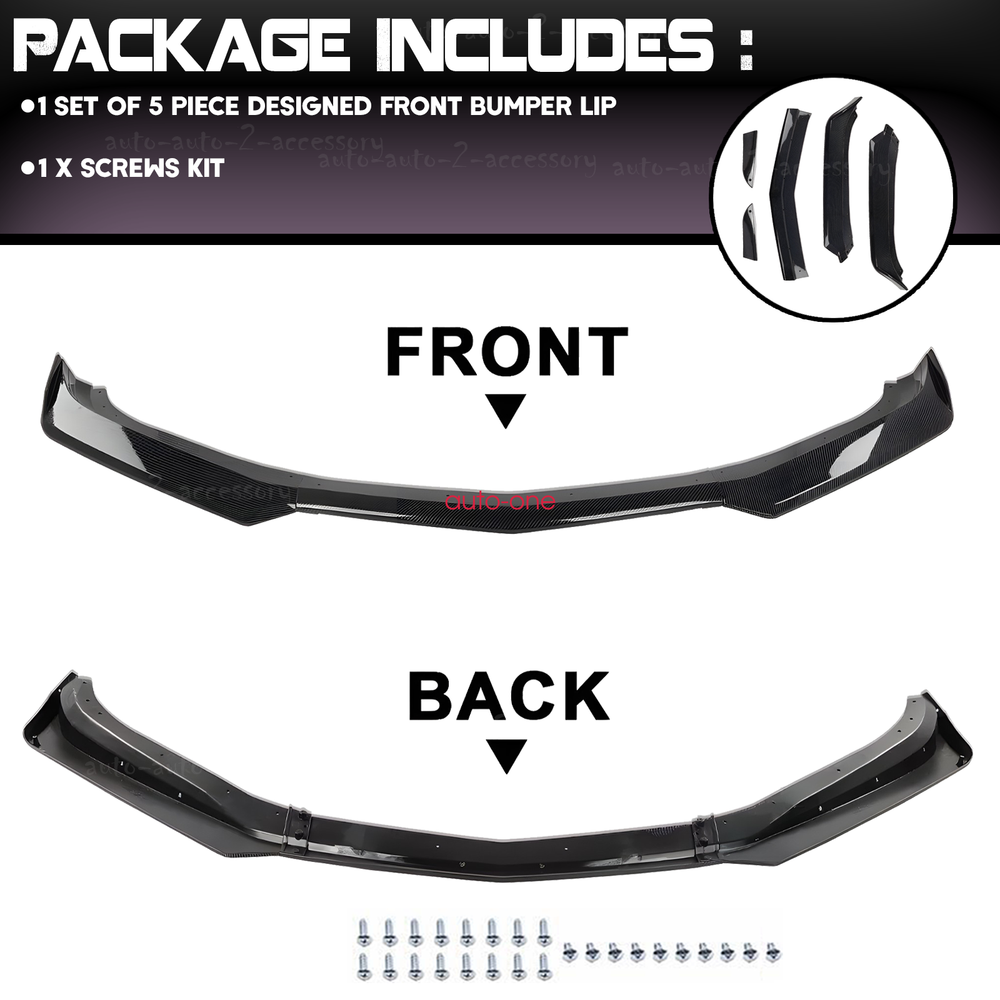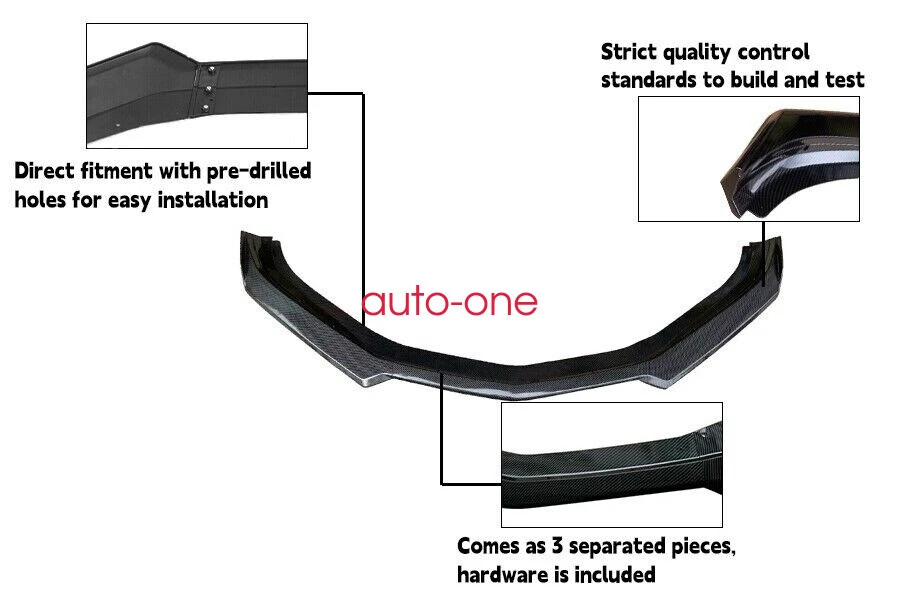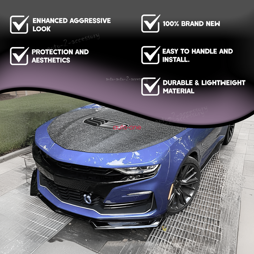 Fits All Models Below: For Camaro SS 16-2024 / LS LT RS 19-2024 Package Includes: 1 Set of Painted Carbon Fiber Style Front Bumper Lip (as shown in pictures) About This Item: 100% Brand New: OEM fitment and quality at a decent price! Design: Comes as 3 separate pieces; hardware is included. Finish: Painted carbon fiber style for a sleek look. Material: Made of durable and lightweight ABS plastic. Benefits: ●Provides a more aggressive front end appearance. ●Protects the bumper from scratches. ●Enhances the sporty look of your vehicle. Note : Installing template is NOT included. Professional installation is highly recommended. Important Notes: ☺ Installation: No install template included; we highly recommend a skilled professional with proper tools for installation. ☺ Inspection: Please inspect the item carefully and perform a dry test before actual installation or painting. ☺ Returns: Items modified or damaged during installation will not qualify for return/exchange. ☺ Safety: Ensure the item is securely installed before driving. We are not responsible for any parts that come loose or go missing after installation. ☺ Feedback: Negative feedback does not resolve issues and may void warranty. Please contact us through the eBay messaging system before leaving negative feedback. We will do our best to resolve any issues.