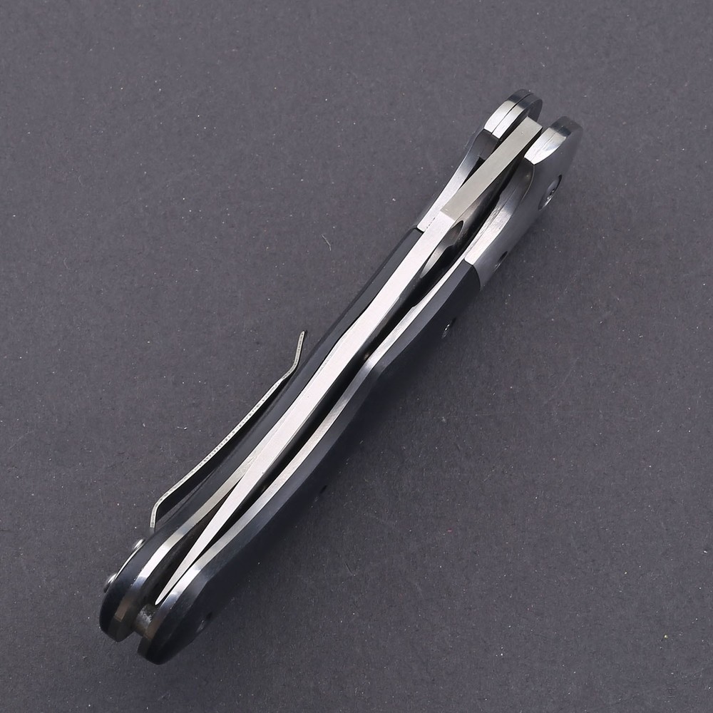 Product Description Full length: 214mm/ 8.43 inch Blade length: 85mm/ 3.35 inch Shank length: 122mm/4.80 inch Blade width: 28mm/ Blade thickness: 3.0mm Blade material: CTS-XHP Weight: 140 G with packing/ 4.94 oz Hardness: 58HRC Surface: sand light Handle material: mirror light steel head + black G10 Lock type: Liner lock