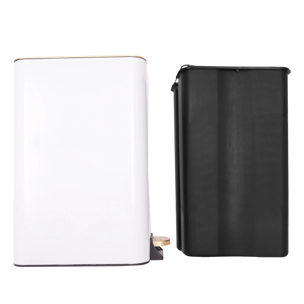 Specifications Color: White Material: Carbon Steel, PP, ABS Process: Spraying Paint Capacity: 12L/3.17Gal Mount Type: Free Standing Assembly Required: No Product Size: 24*18*37cm/9.45*7.09*14.57in Packaging Size: 39.5*30.5*22cm/15.55*12*8.66in Gross Weight: 2.3kg/5lbs Net Weight: 1.8kg/3.97lbs Package Included 1*Step Trash Bin 1*Inner Barrel Carbon Steel Step Trash Bin 12L Step On Kitchen Garbage Bin Foot Pedal Trash Can Description Boasting a streamlined shape and compact dimensions, this step trash bin can blend into different decoration styles of your home. The pedal effortlessly controls the lid's opening and closing without hand contact, thus safeguarding your health and keeping the house clean. Its compact size and 3.17gal inner barrel allow this product to fit in a variety of narrow places such as the kitchen, bathroom, and so on to easily dispose of daily garbage. Key Features High-quality Material: Built of premium carbon steel, PP, and ABS, the product is corrosion-resistant , anti-wear , hard to deform, and can keep high sturdiness and practical function for long-term use. Large Capacity: 3.17Gal large capacity can meet your daily trash storage needs and avoid dumping multiple times in a day. Quiet Closing: This product has a built-in hydraulic slow closing device, when your foot is off the pedal, the trash can will close slowly and quietly without making a loud noise, so you don't have to worry about affecting your family's rest. The lid design can effectively prevent pets from getting into the trash can and making a mess in the room. Healthy to Use: You can tap the pedal to open the top and throw the trash away, avoiding direct contact with the trash can and maintaining your personal hygiene and health. Easy to Clean: The smooth surface, simple structure, and removable inner barrel allow you to easily clean both its interior part and exterior part with a soft cloth. Modern Design: The simple shape, smooth lines, golden trim, and pure white color make the product easily blend into various types of rooms, and become an excellent home decoration complement to the room. Space Saving: The compact size(9.45*7.09*14.57 inches) allows you to place it in corners and narrow places in your room, saving you space for other furniture. Thoughtful Design: The inner bucket comes with a convenient handle that allows it to be easily removed and cleaned. It also comes with a trash bag hole for storing extra trash bags. Details Rounded Corners: They are smooth and comfortable to the touch, and can protect your hands from getting scratched during daily use. Non-slip Footrest: The convex texture texture on the footrest can increase friction and prevent your feet from sliding when you step on it. Application The product is suitable for the kitchen, bedroom, living room, study, activity room, children's room, office, classroom, and so on. Specifications Color: White Material: Carbon Steel, PP, ABS Process: Spraying Paint Capacity: 12L/3.17Gal Mount Type: Free Standing Assembly Required: No Product Size: 24*18*37cm/9.45*7.09*14.57in Packaging Size: 39.5*30.5*22cm/15.55*12*8.66in Gross Weight: 2.3kg/5lbs Net Weight: 1.8kg/3.97lbs Package Included 1*Step Trash Bin 1*Inner Barrel Notes 1. Please check the size carefully before ordering. 2. Please allow the slight color difference caused by the shooting light and 1-3cm error due to manual measurement, and make sure you do not mind before you order. Payment Delivery details Terms of sales About us Contact us Payment We accept ebay payment 。 Fees such as import duties, taxes are not included in the item price or shipping costs. These charges are the buyer's responsibility. Delivery details Shipping: 2-9 working days to: USA Terms of sales We maintain high standards of excellence and strive for hundred percent customer satisfaction. Feedback is very important to us. We hope that you contact us immediately before you give neutral or negative feedback, so that we can address your concerns. It is impossible to address issues if we do not know about them! About us Your satis faction is our ultimate goal. We work hard to earn your trust and future business. Our certified technicians have tested each item before shipping. The unit comes with 1 year limited warranty on all manufacturing defects. a) If you receive a defective item, you may return it or ask for a discount. Please contact us within 14 days after you receive the package. b) What you returned must be intact and in its original packaging as re? u. Customer is responsible for shipping costs of the returned item. c) We will cover the cost of shipping back t with the shipping rate indicated in the registration page. We will send you a new unit or refund the full payment you paid. Thank you. Contact us Business Hour Business Hour: Monday To Friday: 8:30 AM to 5:00 PM (Beijing China time) Due to time zones, our reply to your questions may not be immediately. But within above working time, we will reply your email within 24 hours. If it's non-workdays, please kindly be patient and wait till Monday. Please contact us with ebay message. Please feel free to contact us if you have any questions. Monday To Friday: 8:30 AM to 5:00 PM (Beijing China time) Due to time zones, our reply to your questions may not be immediately. But within above working time, we will reply your email within 24 hours. If it's non-workdays, please kindly be patient and wait till Monday. Please contact us with ebay message. Please feel free to contact us if you have any questions. Brand Unbranded Item Length 24cm/9.45in Item Width 18cm/7.09in Item Height 37cm/14.57in Type Step Trash Bin Room Home Office/Study Color White Material Carbon Steel, PP, ABS Capacity 12L/3.17Gal Size 24*18*37cm/9.45*7.09*14.57in Features Lid Lock Style Modern Shape Rectangle Mount Type Free Standing Assembly Required No Packaging Size 39.5*30.5*22cm/15.55*12*8.66in Gross Weight 2.3kg/5lbs Net Weight 1.8kg/3.97lbs