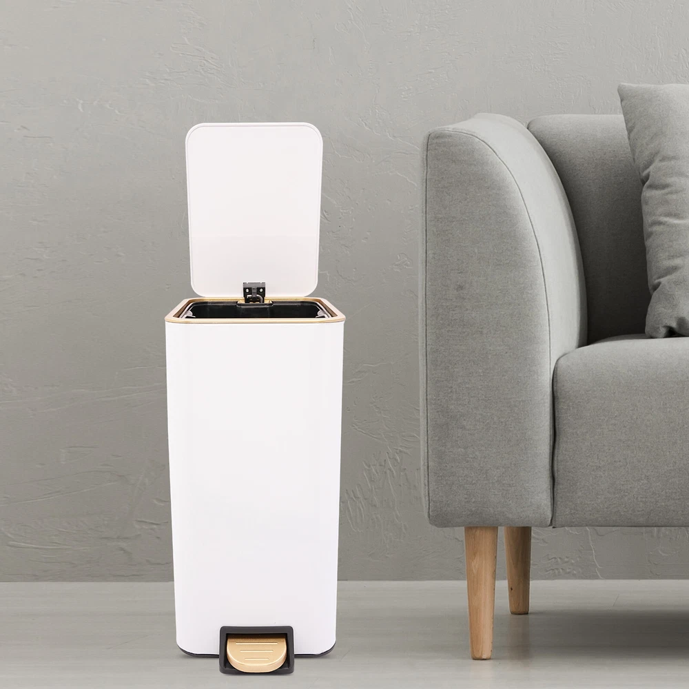 Carbon Steel Step Trash Bin 12L Step On Kitchen Garbage Bin Foot Pedal Trash Can
