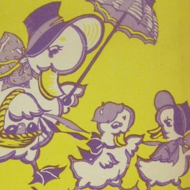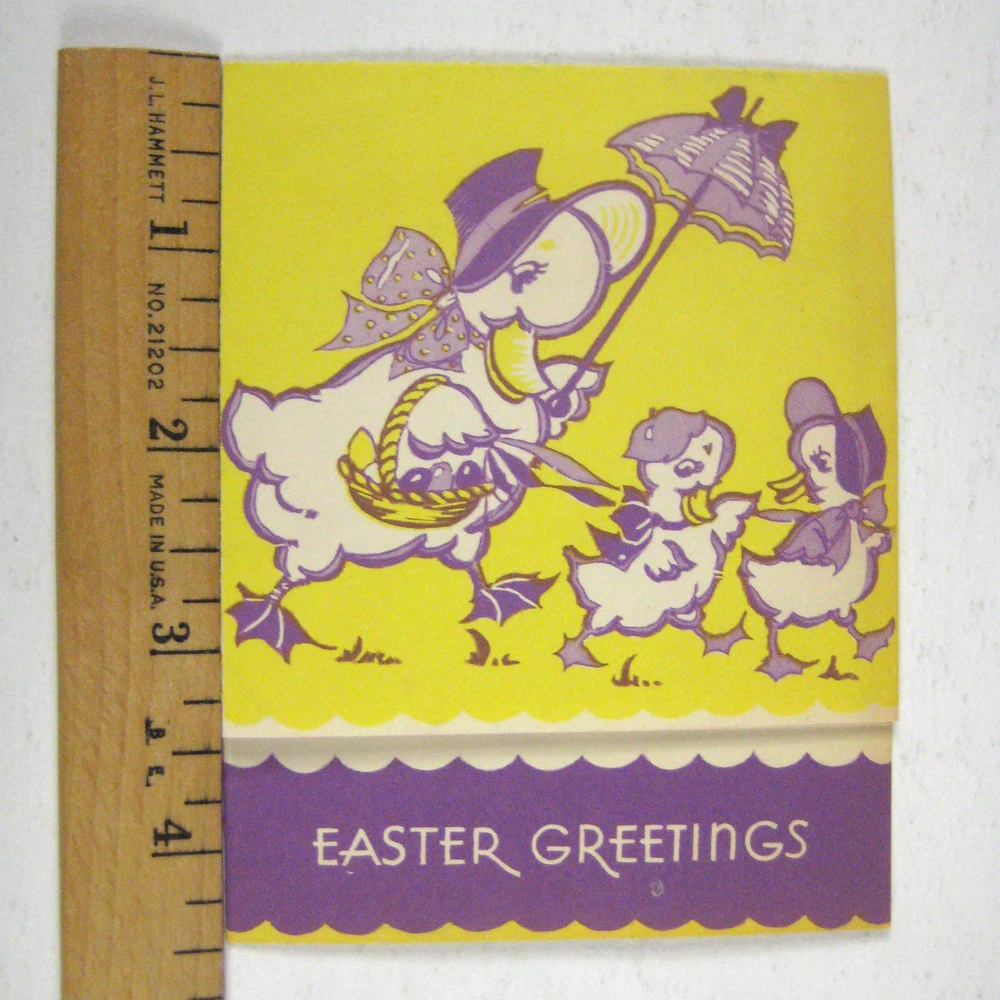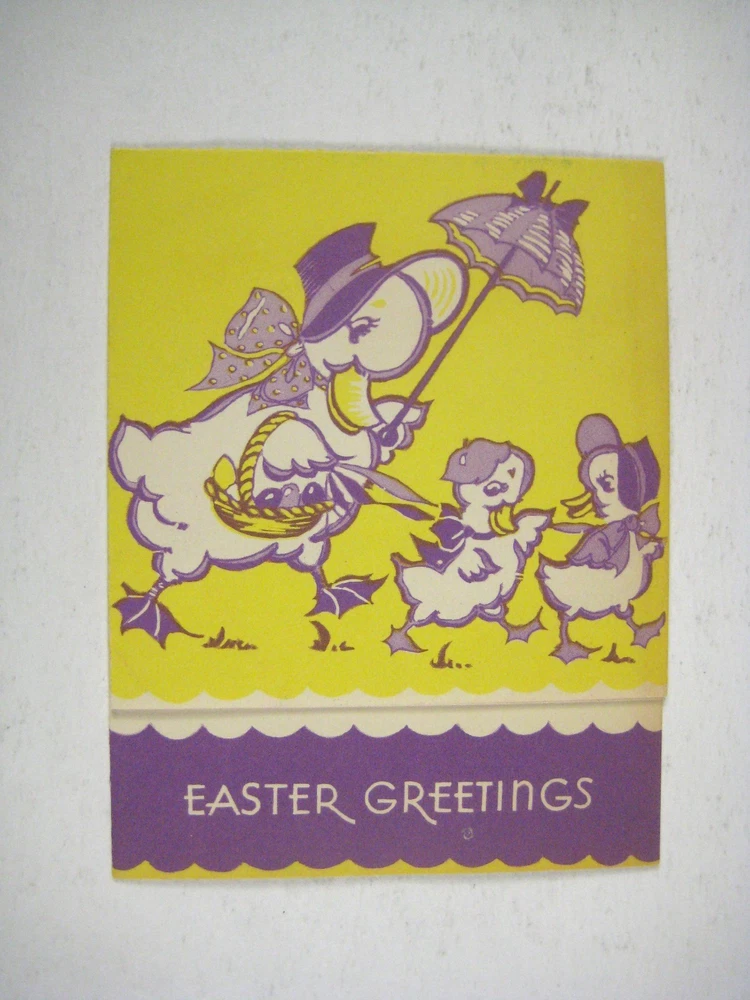 Card Easter Day 1949 Used Anthropomorphic Duck Basket Family Bonnet Walking Torn