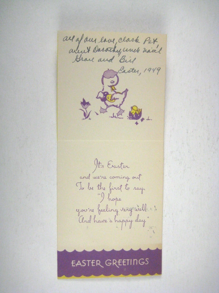 BAP Card Easter Day 1949 Used USA Duck Swimming Boy Child Torn Back
