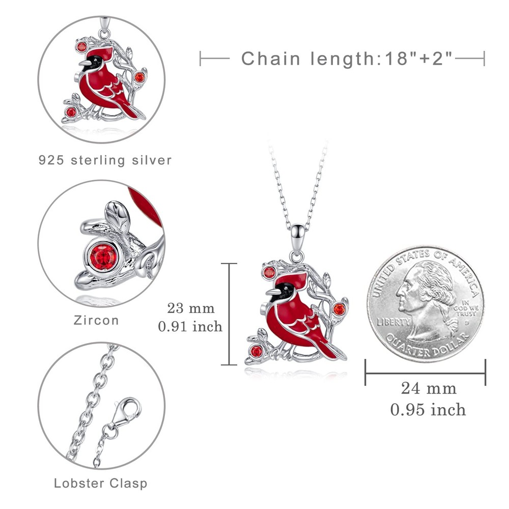 Urn Necklace: Cardinal are seen as a messenger from heaven because of their pattern to show up in times of grief after the loss of a loved one.This could be due to the presence of angels, loved ones, or spirit guides that are around someone Cremation Necklace Size: The chains length : 18+2 inch adjustable,The cremation urn ashes pendant weight:6.61g, Ashes Pendant size: 23MM(0.91 inch) Sterling Silver Urn Necklace: The urn necklace for ashes made of 925 sterling silver, Nickle-free, Lead-free and hypoallergenic. Protect and safe for sensitive skin.Platinum-plating,Make the metal surface smooth and durable, not easy to fade, rust, tarnish, turn skin green Best Gifts Choice: The best urn necklace for women, mothers, grandmothers, wives, friends or other family members, to keep the memories of their loved ones in their hearts forever Guarantee: We check every item carefully before sending to customer, please feel free to contact us if you have any problems about product