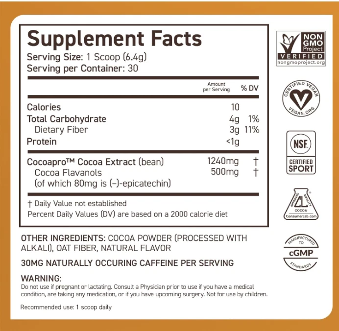 CocoaVia Cardio Health Cocoa Powder, 30 Servings, 500mg Cocoa Flavanols, Support Heart Health, Boost Nitric Oxide, Improve Circulation, Energy, Preworkout, Vegan, Dark Chocolate Cacao Brand CocoaVia Flavor Cacao,Chocolate Unit Count 6.8 ounce Item Form Powder Item Weight 500 Milligrams Product Benefits Heart Health Support Age Range (Description) Adult Number of Items 1 Dosage Form Powder Material Feature Plant-Based, Vegan See more About this item CLINICALLY PROVEN RESULTS - Backed by more than 20 years of Scientific Research, 30 plus Clinical Studies, and 150 Published Scientific Papers. Cocoa Flavanols are one of the most researched plant-based nutrients. PROMOTES A STRONG HEART & CARDIOVASCULAR HEALTH - Helps improve vascular elasticity and arterial function, and blood flow. NITRIC OXIDE SUPPLY BOOSTER - Cocoa flavanols increase nitric oxide output, a super molecule that enhances circulation by making arteries more flexible. This results in a boost of oxygen supply through heart, muscles and brain. POWER UP YOUR WORKOUTS with circulation boosting bioactives. Like a natural pre workout, these cocoa based bioactives help boost nitric oxide supply for better blood flow and nutrient delivery to the muscles when they need it most. MOST CONCENTRATED COCOA FLAVANOL PRODUCT* – Tested & Verified by Consumer Labs. Each scoop contains 500 mg of Cocoa Flavanol and also delivers 30 mg of naturally occurring caffeine. Cocoa Flavanols work best when taken daily. Consider adding to your morning coffee, smoothies or oatmeal. *Among 46 Cocoa Products. . We offer FREE shipping on all orders! . We ship within Five business days of payment, usually sooner. . We use a selection of shipping services such as UPS, FedEx, USPS etc. . We only ship to the lower 48 states, no APO/FPO addresses or PO Boxes allowed. . Local pickups and combined shipping options are not provided at this time. . Your satisfaction is a wonderful reward for our efforts. Please assist us by leaving a positive review if you feel pleased with our service. . In the event that you encounter any difficulties related to your order, please do not hesitate to reach out to us directly through the Messaging system on the Ebay platform. Kindly consider opening a COMPLAINT or a RETURN REQUEST as a last resort, only after all other possible measures have been attempted and we have been unable to provide you with assistance. . We will get in touch with you within 24 hours and make every effort to ensure your satisfaction. . Please rest assured of our service quality.
