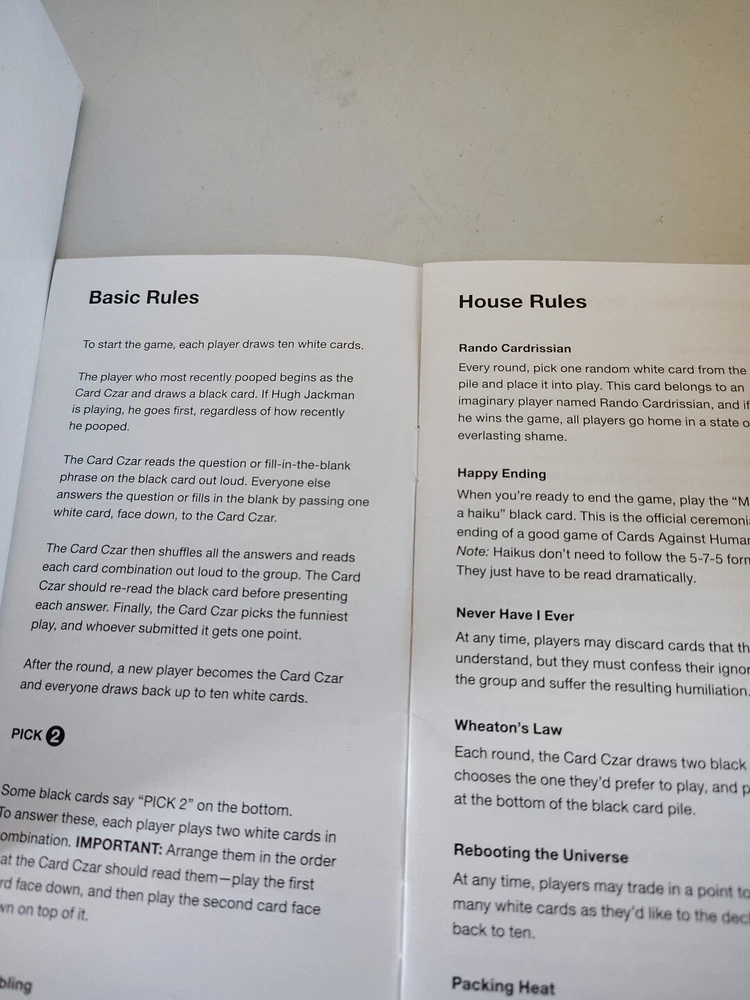 Cards Against Humanity With Instructions On How To Play