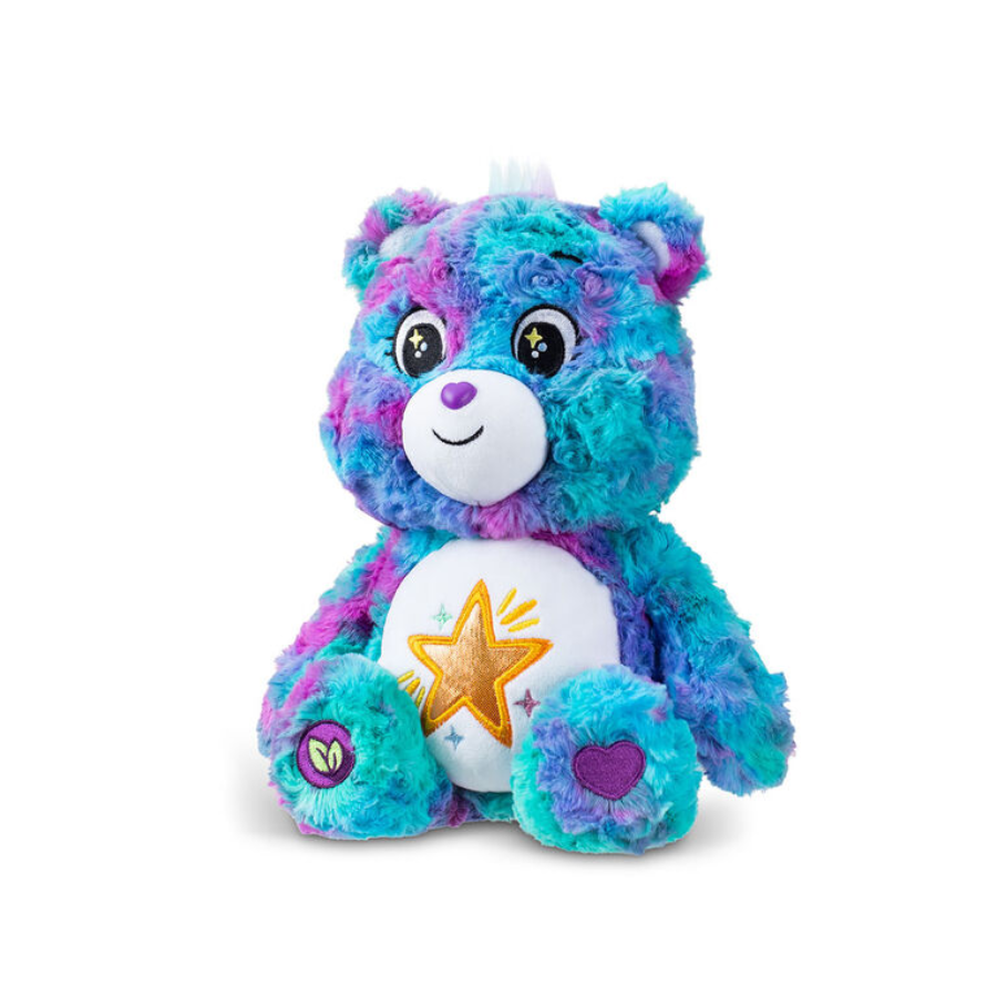 Care Bears 14" Good Wishes Bear Plush | Tie-Dye | Eco-Friendly | Brand New | Canada Import | Free Shipping Join the lovable Care Bears on their mission to spread sharing and caring worldwide with the 14" Good Wishes Bear Eco Plush ! This plushie brings her message of kindness, support , and positivity , making her the perfect companion for kids and collectors. Designed with fluffy, multicolored tie-dye fur in shades of blue, purple, and green, Good Wishes Bear is a unique and vibrant addition to the Care Bears family. Her glistening gold belly badge featuring a smiling star symbolizes her constant encouragement for all your goals and dreams. Imported from Canada and made with eco-friendly materials , this plush bear is irresistibly soft and a sustainable choice for your collection. Free Shipping is included! Key Features: Good Wishes Bear : Supportive and sweet, she celebrates your accomplishments and sends good wishes for a bright future. Fluffy, Tie-Dye Fur : A beautiful, multicolored pattern of blue, purple, and green makes this bear extra special and fun to hug. Glistening Gold Belly Badge : Her golden star belly badge symbolizes her unwavering support and positive wishes for your success. Soft & Sustainable : Made with high-quality, sustainable materials , perfect for kids and eco-conscious collectors. 14" Plush : At 14 inches tall, Good Wishes Bear is the perfect size for snuggles, adventures, and celebrating life’s triumphs. Benefits: Unique Design : The tie-dye fur and sparkling belly badge make this plushie stand out in any collection. Irresistibly Huggable : Soft and cuddly, perfect for cozy snuggles, playtime, or display with pride. Eco-Friendly : Made with sustainable materials , this bear is as kind to the environment as she is to you. Ideal For: Care Bears fans of all ages who love spreading kindness and joy with every snuggle. Anyone looking for a thoughtful gift that encourages positivity and support, perfect for birthdays, holidays, and special occasions. Collectors who want a unique, eco-conscious plush with a beautiful tie-dye design. Children ages four and up and the young-at-heart who cherish the message of sharing and caring. Order now to welcome Care Bears 14" Good Wishes Bear Plush into your home! It's brand new, eco-friendly, and imported from Canada, and Free Shipping is included!