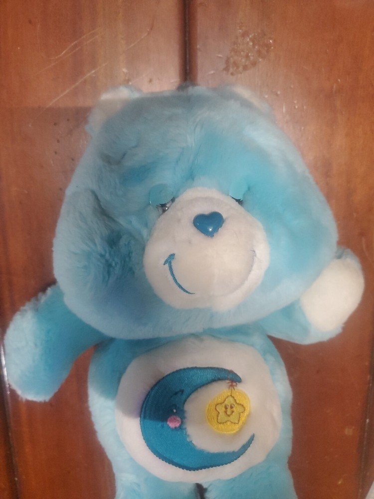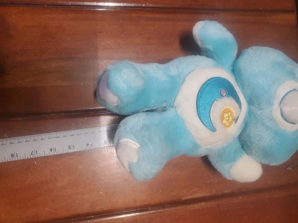 This Care Bears Bedtime Bear plush is a must-have for any fan of the beloved children's show. With its soft and cuddly blue plush material, it's perfect for bedtime snuggles or playtime hugs. This 13-inch bear is made by Kenner and is part of the 20th Anniversary collection by Carleton Cards. The bear's character is inspired by the popular Care Bears franchise, featuring the lovable Bedtime Bear character. The plush material is made of high-quality materials, ensuring durability and longevity. This bear is perfect for collectors or anyone looking for a special addition to their stuffed animal collection.