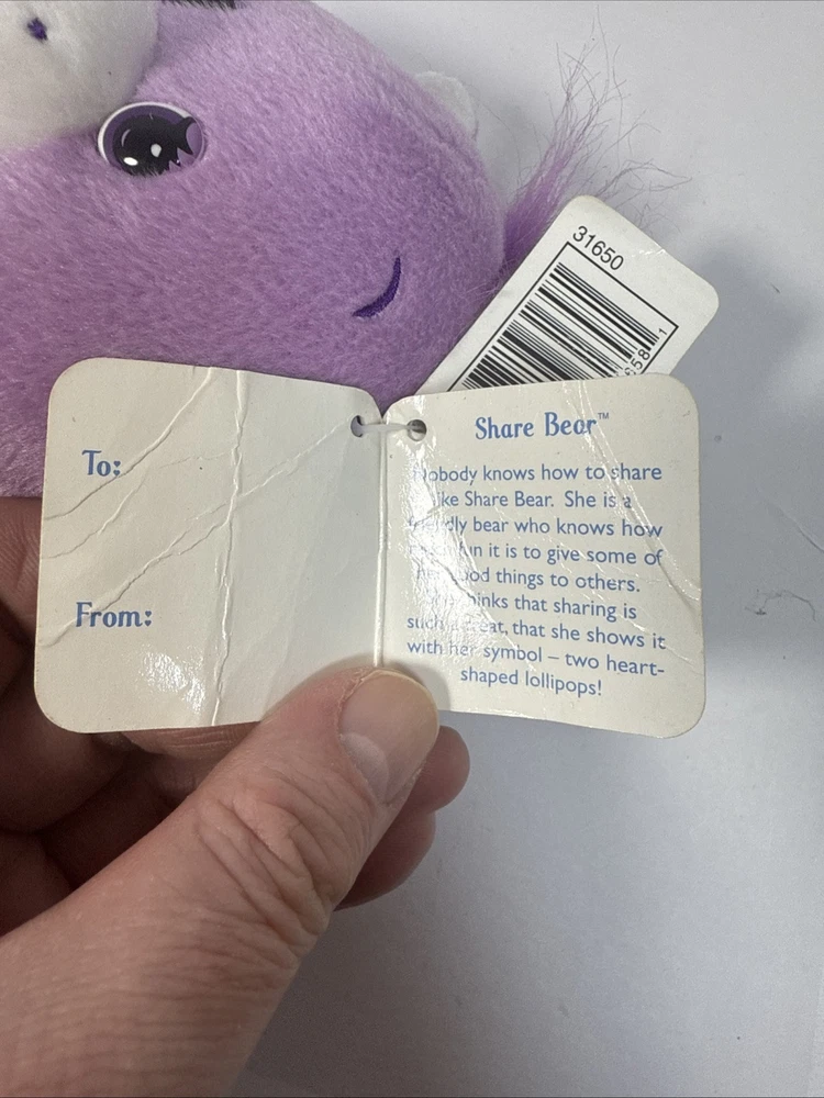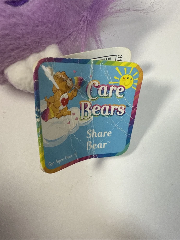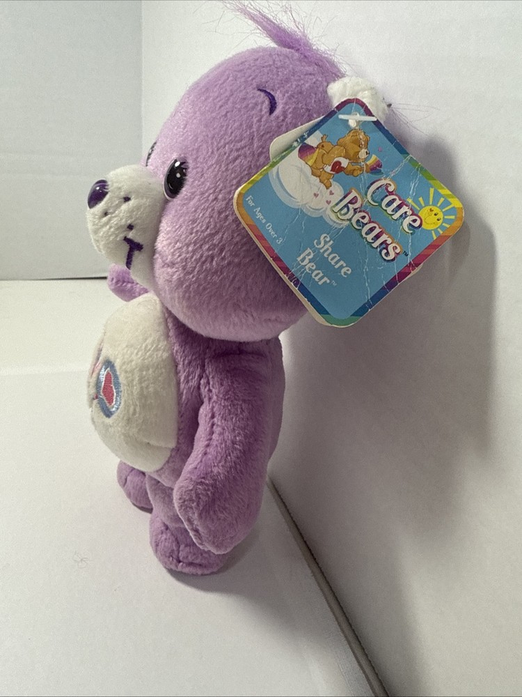 Care Bears Share Bear 8" bean bag plush purple bear, 2002 TCFC Play Along w/tags