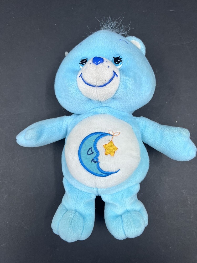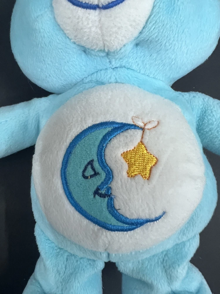 This Care Bears Bedtime Bear plush toy is perfect for anyone who loves the Care Bears franchise. The blue bear is 8 inches tall and made of soft plush material. It features a moon and stars theme, making it ideal for anyone who is a fan of celestial designs. The toy also comes with tags and was manufactured in 2002. It would make a wonderful addition to any Care Bears collection or a great gift for a Care Bears fan.