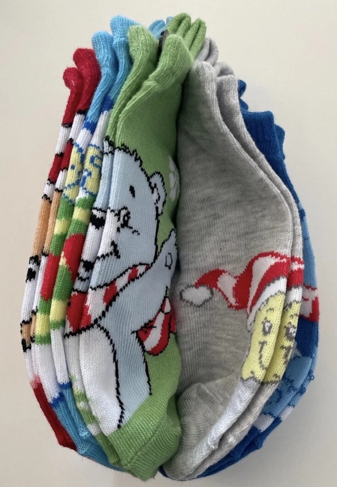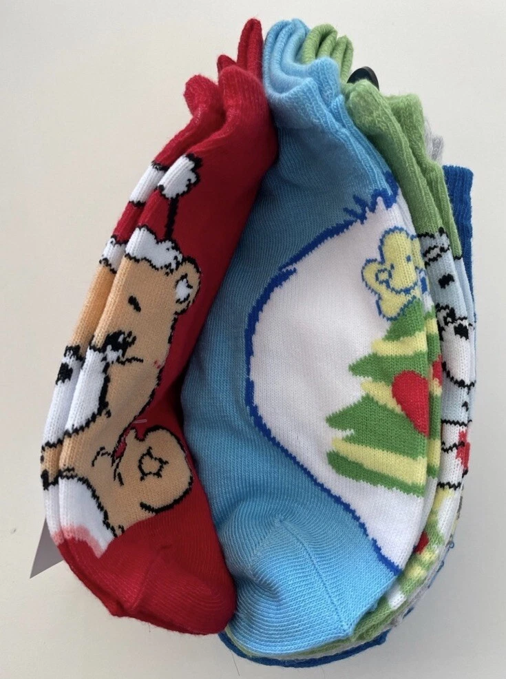 Add some fun to your sock collection with these Care Bear Christmas women's no-show socks. The set includes five pairs of socks featuring the lovable Care Bears characters in a multicolor pattern. Perfect for any occasion, from activewear to casual wear, these socks are made of lightweight and breathable polyester and spandex material, making them comfortable to wear all year round. The full-toe design and no-show length provide a seamless look, while the machine washable garment care makes them easy to maintain. Ideal for walking and other activities, these socks are available in shoe size 4-10 and are perfect for any season. Get your hands on these socks and add a touch of fun to your wardrobe today!