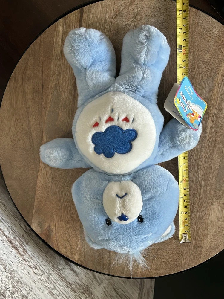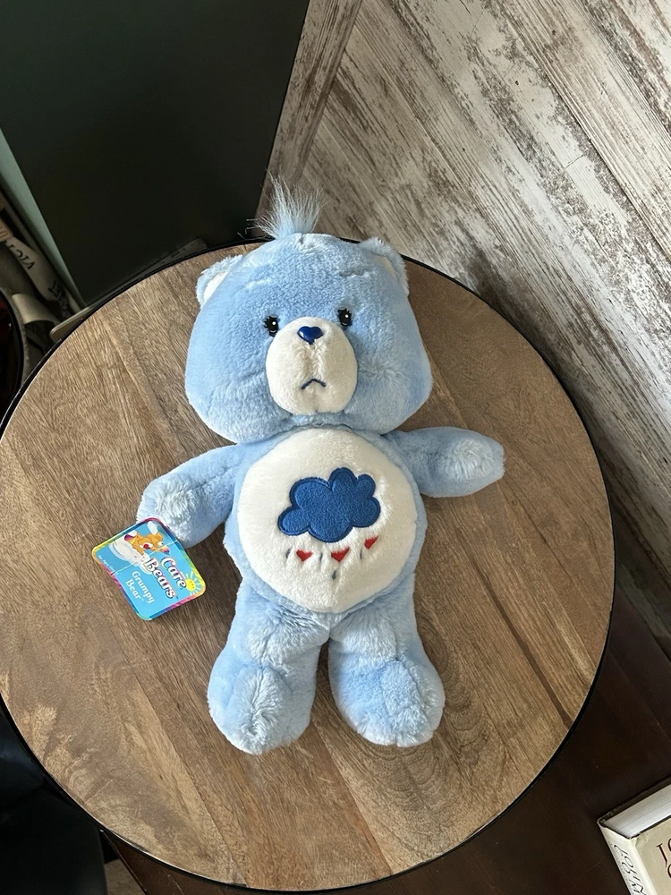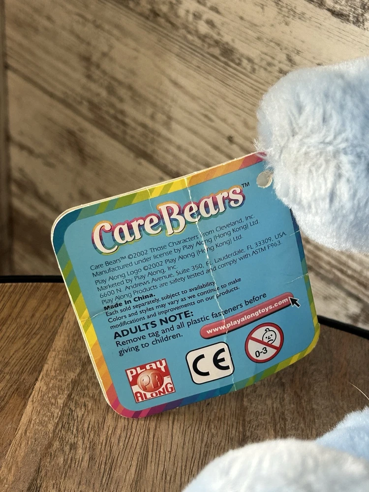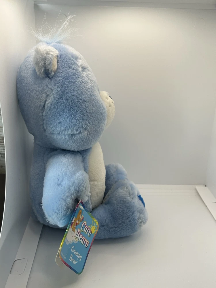 This Care Bears Grumpy Bear plush toy is a must-have for all bear collectors. With its blue bear color and rain cloud design, it is a unique addition to any collection. This 13-inch stuffed toy is made of high-quality materials and features Grumpy Bear's classic grumpy expression. The toy is brand new with tags and was manufactured in 2002. It is an original and licensed reproduction, and is perfect for all occasions. This Care Bears Grumpy Bear plush toy is a great gift for any bear lover, and will provide hours of enjoyment.