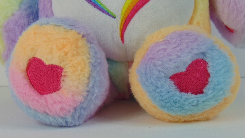 This adorable Care Bears plush is so soft and huggable—perfect for fans of all ages! The vibrant rainbow heart design is super cute, and the included Pez dispenser is a fun bonus. Arrived in great condition, well-packaged, and smells fresh. Love the cheerful colors and high-quality stitching—definitely a must-have for collectors or as a sweet gift!