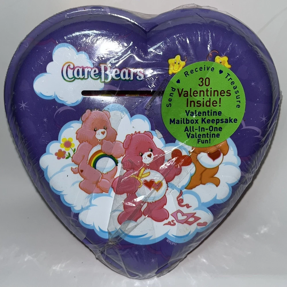 This Care Bears Valentine Card Mailbox Tin Keepsake All-In-One Valentines Sealed 2003 is the perfect addition to your Valentine's Day collection. The tin mailbox is designed like a bear and comes with a set of cards. It is a great gift for any Care Bears fan and is perfect for collecting cards. The tin material is durable and the cards are kept safe and secure in the mailbox. This item is a must-have for any collector and is sure to bring a smile to your face.