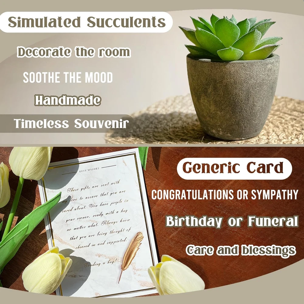 Store New Arrivals Add to Favorite View Feedback Contact Fast deliveries to the customer's home Quality customer service John Make the customers happy! Care Package for Women,12Pc Get Well Gifts for Women after Surgery,Birthday,Get Well Soon,Grief,Sympathy Gifts,Condolences (White) Description Versatile Occasion Gift Set This carefully curated gift box is designed for various occasions, from sharing good wishes to offering comfort. It features a luxurious presentation with high-quality items, including a pair of silk pillowcases, making it a thoughtful choice for gifting. Practical & Lasting Keepsakes Each item is selected for both practicality and lasting value. The cozy blanket, durable mug, and other essentials are meant to be used long-term, serving as daily reminders of your care. Premium Silk Pillowcases Included The set includes two silk pillowcases known for their smooth texture. Silk’s low absorbency may help retain skin and hair moisture, while its soft surface can reduce friction during sleep. Thoughtful Details & Messages Every item comes with a charming printed message, such as “Sip on happy thoughts!” or “This blanket will hug you for me!” These touches add a personal and joyful element to the gift Complete Gift Box Contents Includes: 1 cozy blanket, 1 stylish mug, 2 silk pillowcases, 1 eye mask, 1 pair of socks, 1 faux succulent plant, 1 soy candle, 1 bath bomb, 1 bath salt, 1 handmade soap, and 1 all-occasion greeting card. All items are securely packaged in an elegant gift-ready box Product description 12PC gift for women This gift box is such a thoughtful thing to do for those who you love.It includes more package content, and each item is of higher quality. The packaging design of the gift box and internal products adopts elements such as marble and gold, presenting a classic and luxurious style. Its purpose is to "be the better one". We hope that the recipient of the gift box can feel that they have received the best one you have carefully selected! 2PC Silk pillowcases This gift basket contains two 20 inch x 30 inch silk pillowcases, large enough to hold her pillows. Using it can better protect her hair, prevent frizz and splitting, reduce friction between the pillowcases and the face, thereby reducing the formation of wrinkles and giving her a more comfortable and soft sleeping experience! 16OZ Can Shaped Glass Cups "Sending you the biggest hug", energetic quote brighten her days and make her smile when she enjoy her beverage,The 16OZ can shaped glass cups is 5.9 inches high, 3 inches in diameter,and fit in the cup holder in the car.,Pair with Lid, Straw & Brush - No extra buying of these items,it's an good ideal relaxation gifts for her, friendship gifts for women. Spa gift for women Bath salt balls mixed with essential oils,walnut Handmade Soap and Himalayan bath salts that promote skin metabolism.All of these make up an exquisite bathing package, and bring her a luxurious self care spa experience. Silk Eye Mask & Fuzzy Socks The silk eye mask helps her fall asleep better,Wool textured plush socks are lightweight and cozy, very soft, warm and breathable. luxurious Flannel Blanket The blankets in our gifts for women are made of luxurious facecloth that is soft, cozy and fluffy for complete comfort and relaxation.The flannel blanket is fluffy and soft and measures 39 x 59 inches, making it perfect for use at home or in the office, giving her a hug at all times on your behalf! Artificial Succulents Artificial succulent can make you don't have to worry about the problem of wilting plants, add some plant life to your life, not only make you feel happy but also can be used to decorate and embellish your environment.A simulated cement planter made of degradable pulp, with a plush and super realistic succulent plant. Soybean Wax Scented Candle This 3.5-ounce candle is crafted from pure essential oils and 100% natural soy wax. It boasts a fresh and rich fragrance that has garnered numerous positive reviews. The scent profile features top notes of neroli and citrus, middle notes of Moroccan lavender and jasmine, and base notes of vanilla, cedarwood, and musk. The aroma offers a comforting sensation, akin to lounging on a sofa in a meadow, surrounded by flowers and a gentle breeze. Not only does it help relax the mind and uplift the mood, but it also purifies the surrounding energy. Luxury Blessing Card The greeting card is composed of golden characters and a marble textured background, presenting a retro and luxurious style. The blessing language is a universal blessing suitable for any situation, only expressing your care and good wishes. You can confidently send it out in any situation, and it is also suitable for women in any relationship. Exquisite Gift Box The appearance design of the box is retro luxury style, which gives people a feeling of luxury and is suitable for various occasions, whether visiting patients or celebrating birthdays, it is very suitable! The box body is made of multi-layer thickened cardboard, and the opening of the box is printed with "Hug inside", adding a bit of mysterious anticipation to her before opening the box! No matter what reason you want to give a gift to a lady, it will always be a good choice. This gift box is suitable for best bereavement gifts baskets,condolences gift basket for loss,grief gifts for women,sorry for your loss gifts,sympathy gifts for loss of loved one,unique sympathy gifts baskets,inspirational gifts for women,cheer up gifts for women,sunflower gifts for women,thinking of you gifts for women,thank you gift basket for women,birthday gifts for women,congratulations gift basket,get well soon gift baskets for women,get well gifts for women after surgery,feel better soon gifts for women,surgery recovery gifts for women,relaxation gifts for women,care package for women,self care gifts for women,self care items for women,self care kit,spa gift baskets for women and so on. Item model number TY-ZT-P Style colour Ca