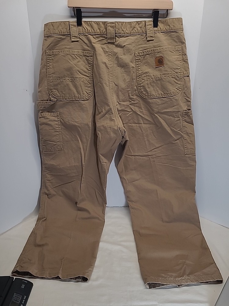 These Carhartt cargo pants in tan are perfect for any man's wardrobe. With a size of 40x30, they are made for regular wear and provide both comfort and style. The pants feature multiple pockets, making them practical for everyday use. The brown color adds a touch of sophistication to any outfit. These pants are suitable for any occasion, whether it's a day at work or a night out. The Carhartt brand ensures high quality, and the cargo style is both trendy and functional. Add these pants to your collection today and step out in style.