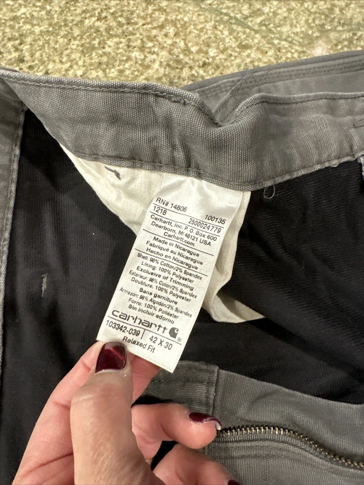 Carhartt 42 X 30 Rugged Flex Relaxed Fit Rigby Pants Knit Lined Gray 103342