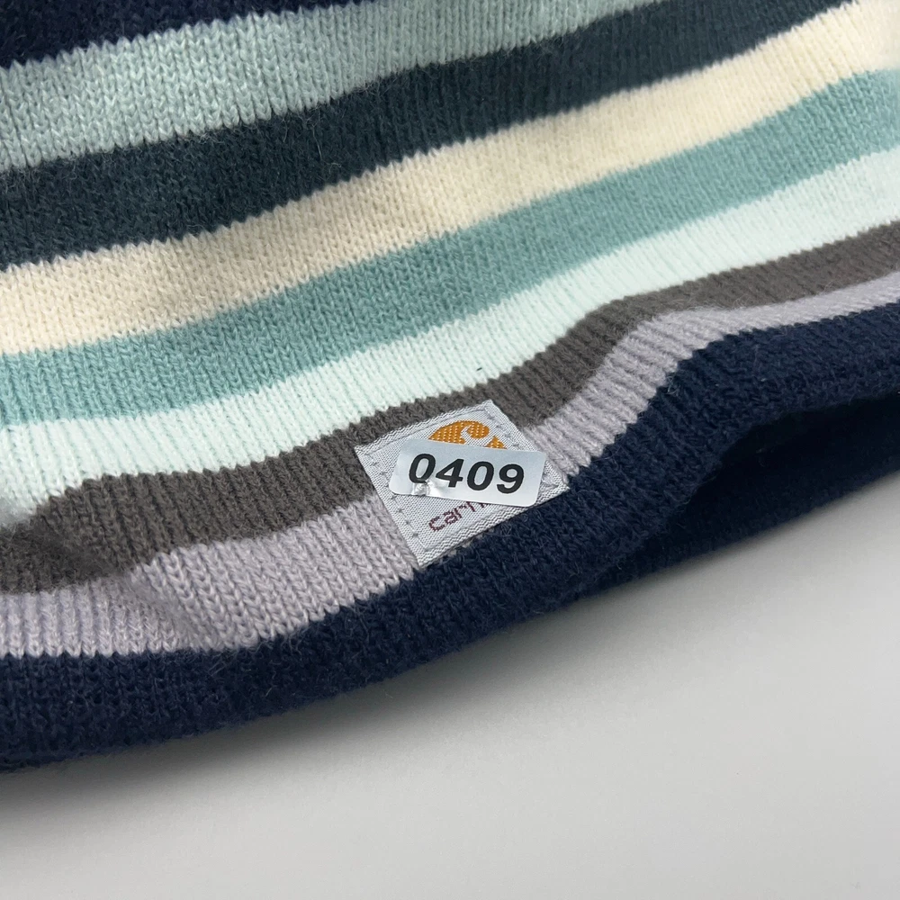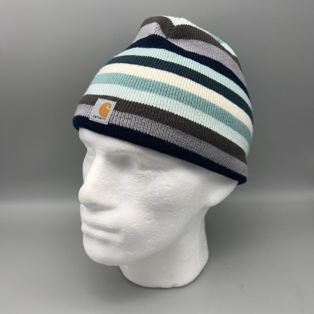 Carhartt Beanie Hat Adult One Size Blue Striped Knit Fleece Cozy Warm Winter Condition: - Good used condition. - No holes or stains. - Nice colors. Size: - Adult one size. Measurements: - Please note, item measurements are approximate. - Previous washings may change the sizing written on the tag. - Please refer to the photos above for all measurements. - Please compare our measurements to that of one of your favorite garments. All items are bagged and sealed after being photographed, then stored in a smoke free environment to ensure the item is exactly the same as when photographed. I carefully package and ship daily. Feel free to contact me with any questions. All items have been washed per eBay standards & policies.
