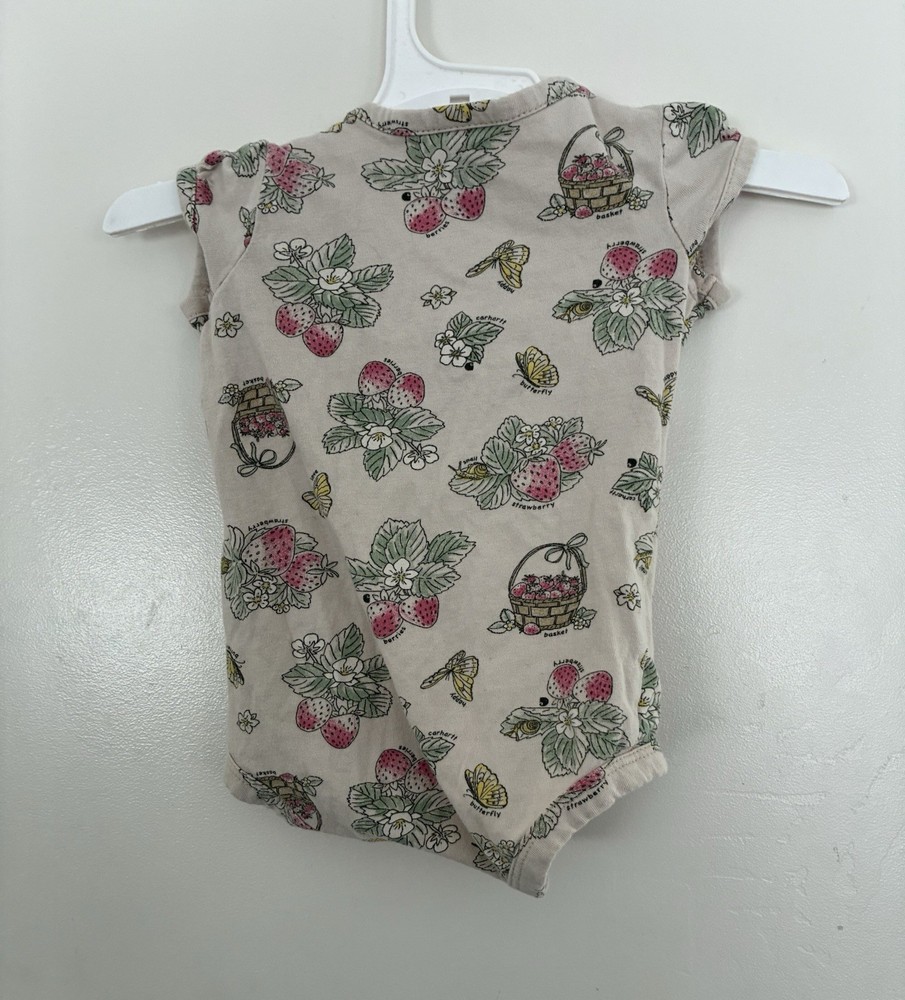 Carhartt Baby Girls Floral Strawberry 100% Cotton Short Sleeve Bodysuit Beige 6M. Condition is pre-owned. Smoke free, pet free home. Shipped via USPS Ground Advantage. In very good condition. Free of rips or stains.