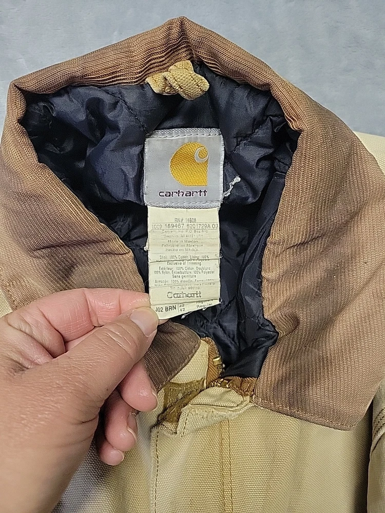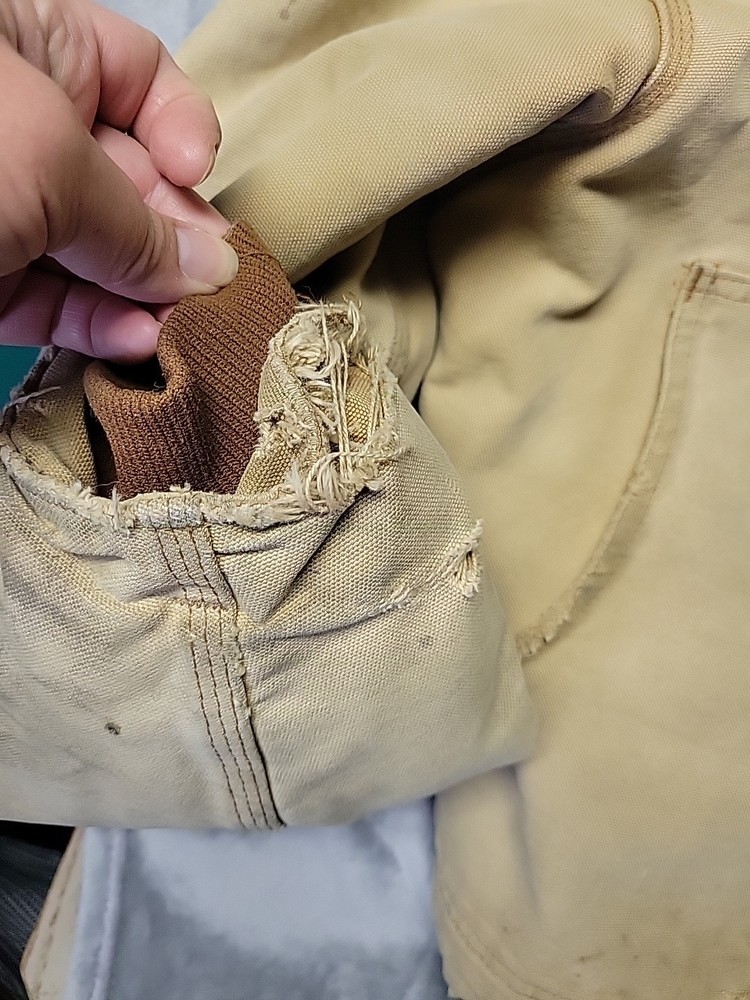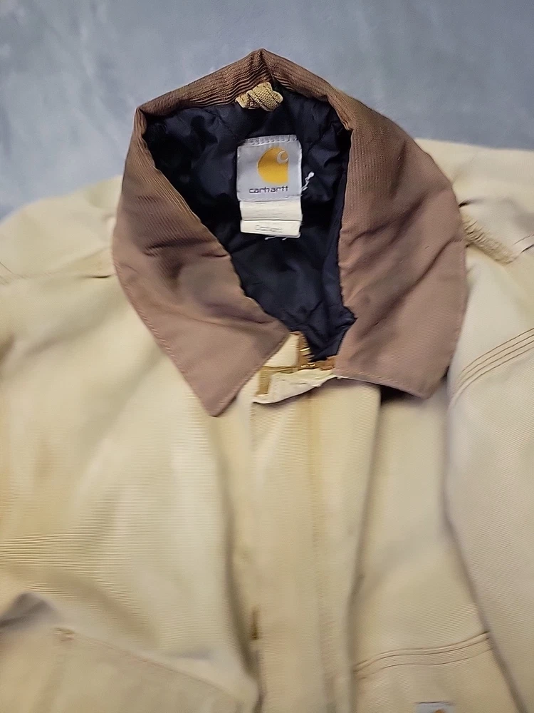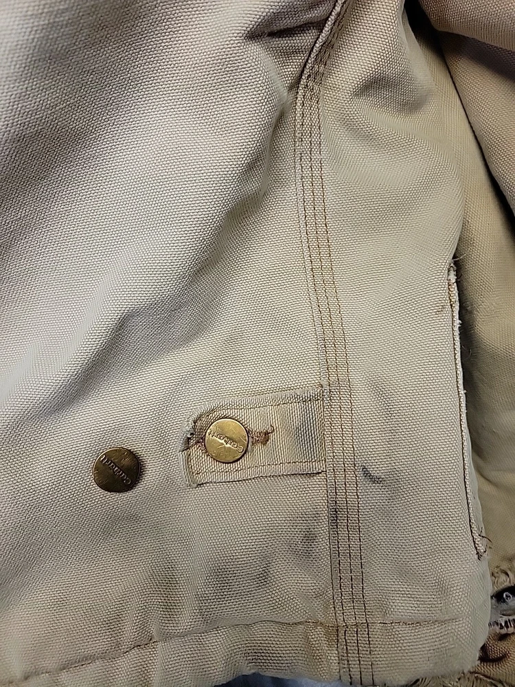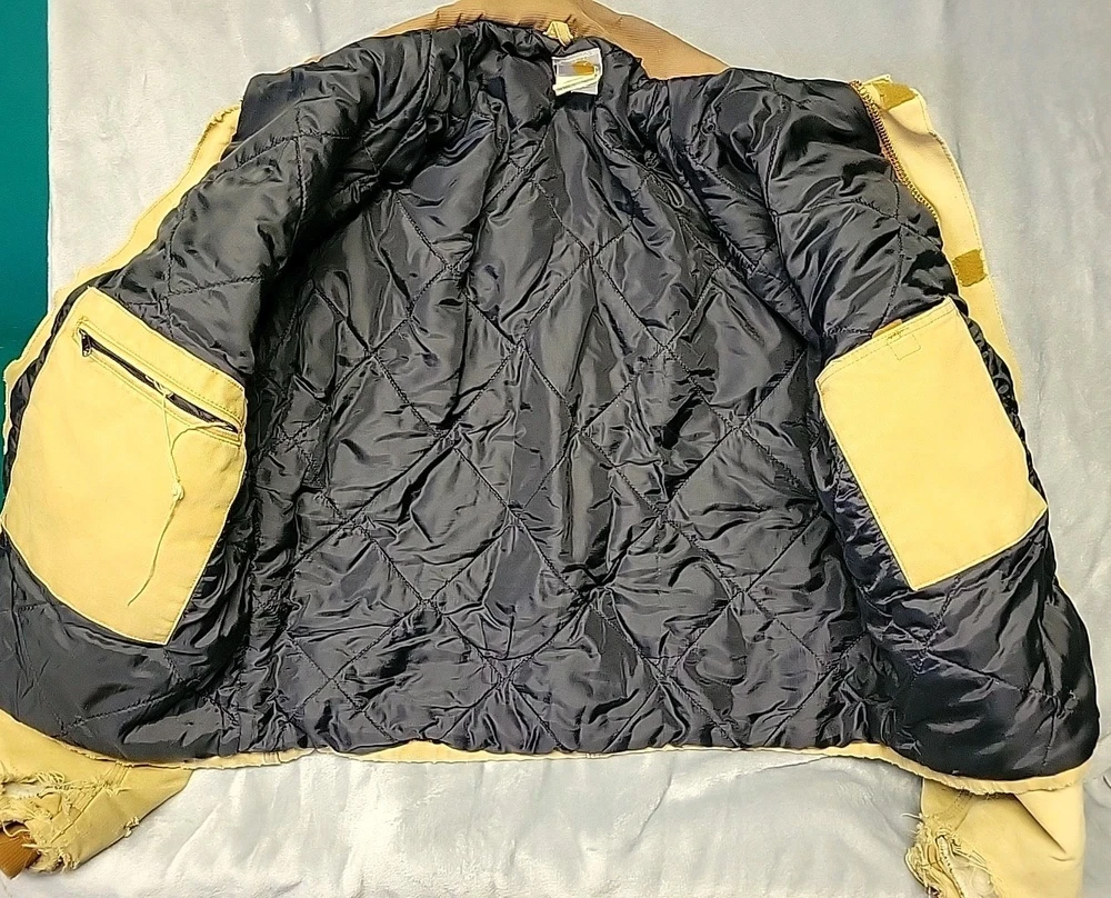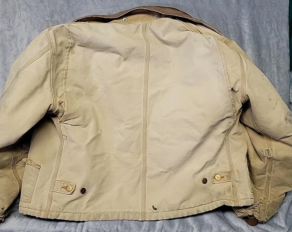 2002 Carhartt Chore Coat. Authentic Heavily distressed frays holes stains this boat has it all. Nice Quilted soft inside. Size 42.