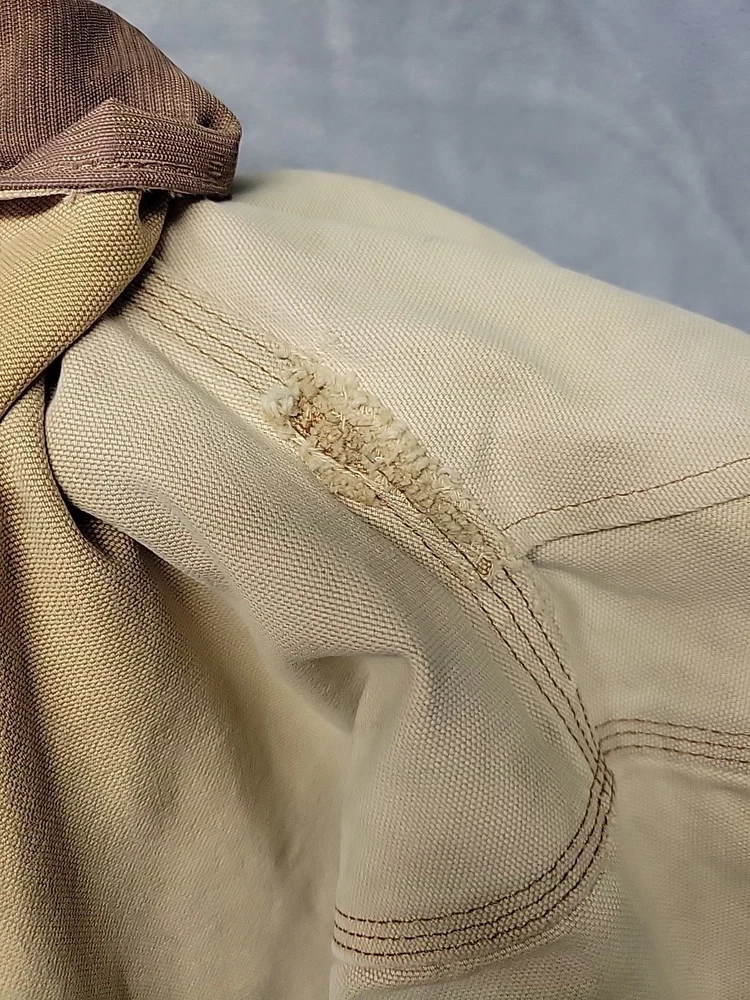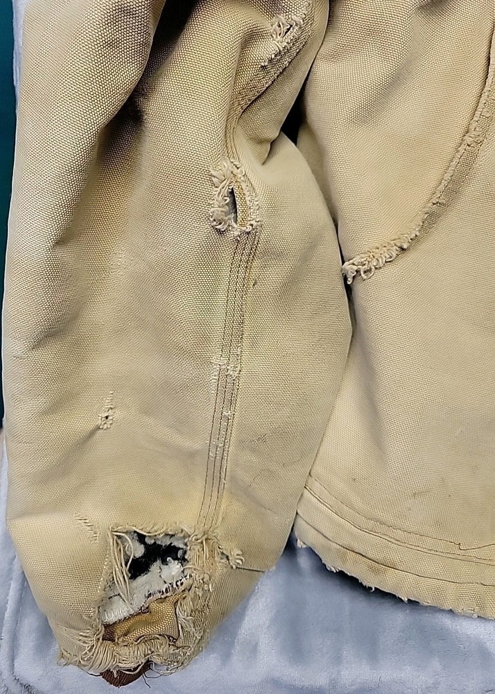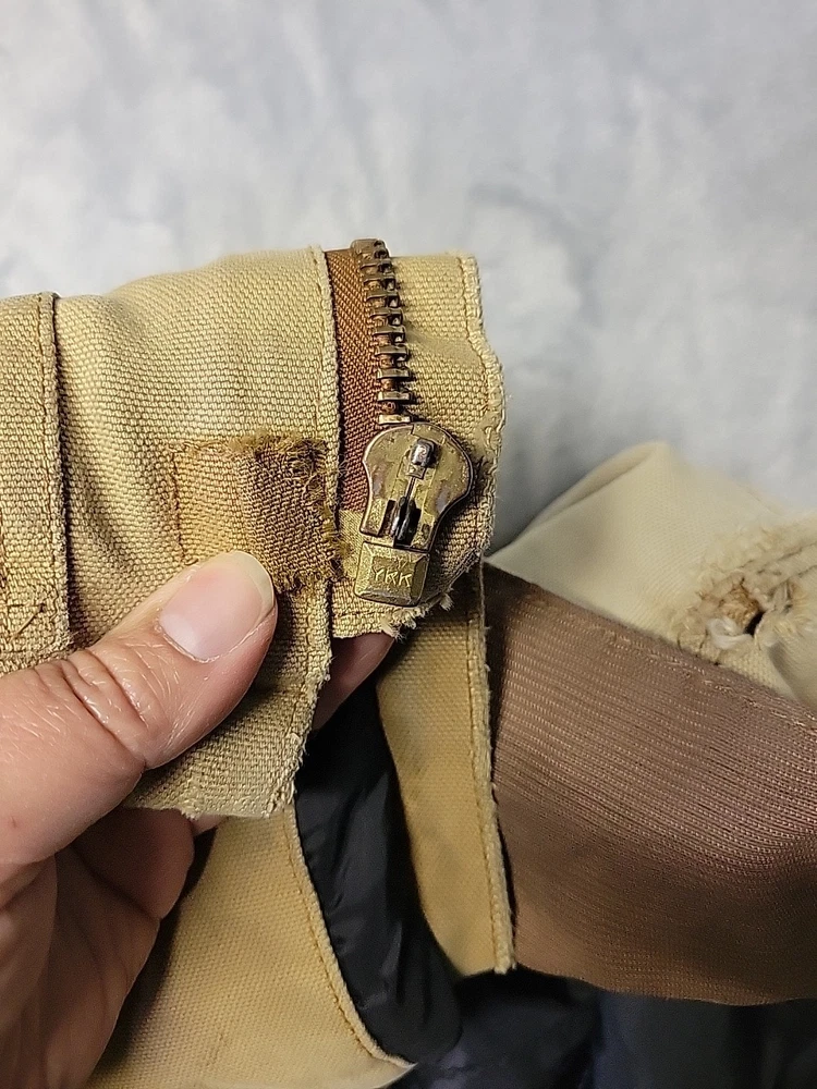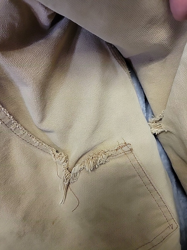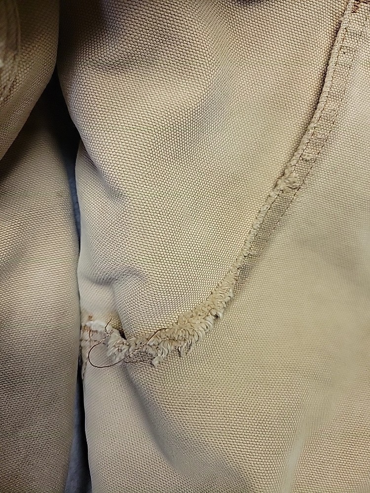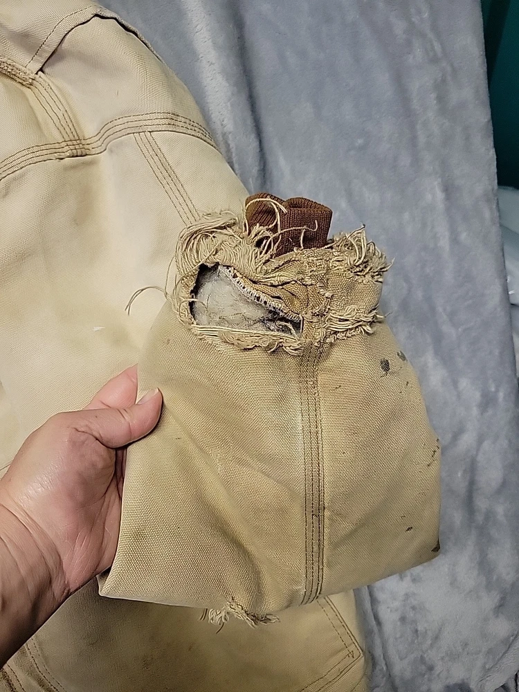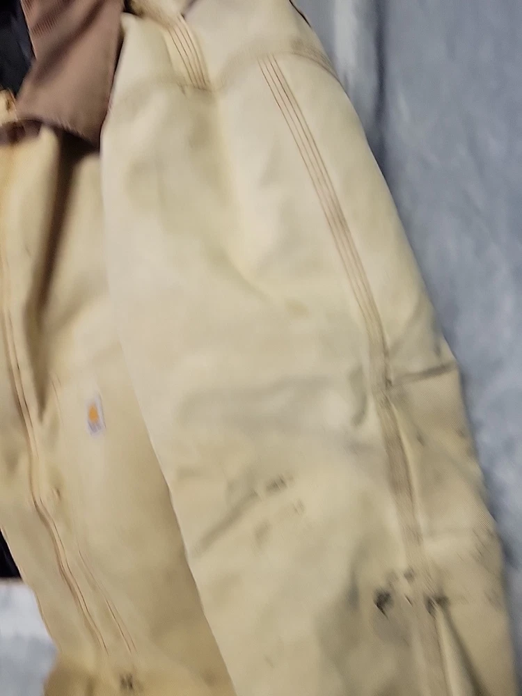 2002 Carhartt Chore Coat. Authentic Heavily distressed frays holes stains this boat has it all. Nice Quilted soft inside. Size 42.