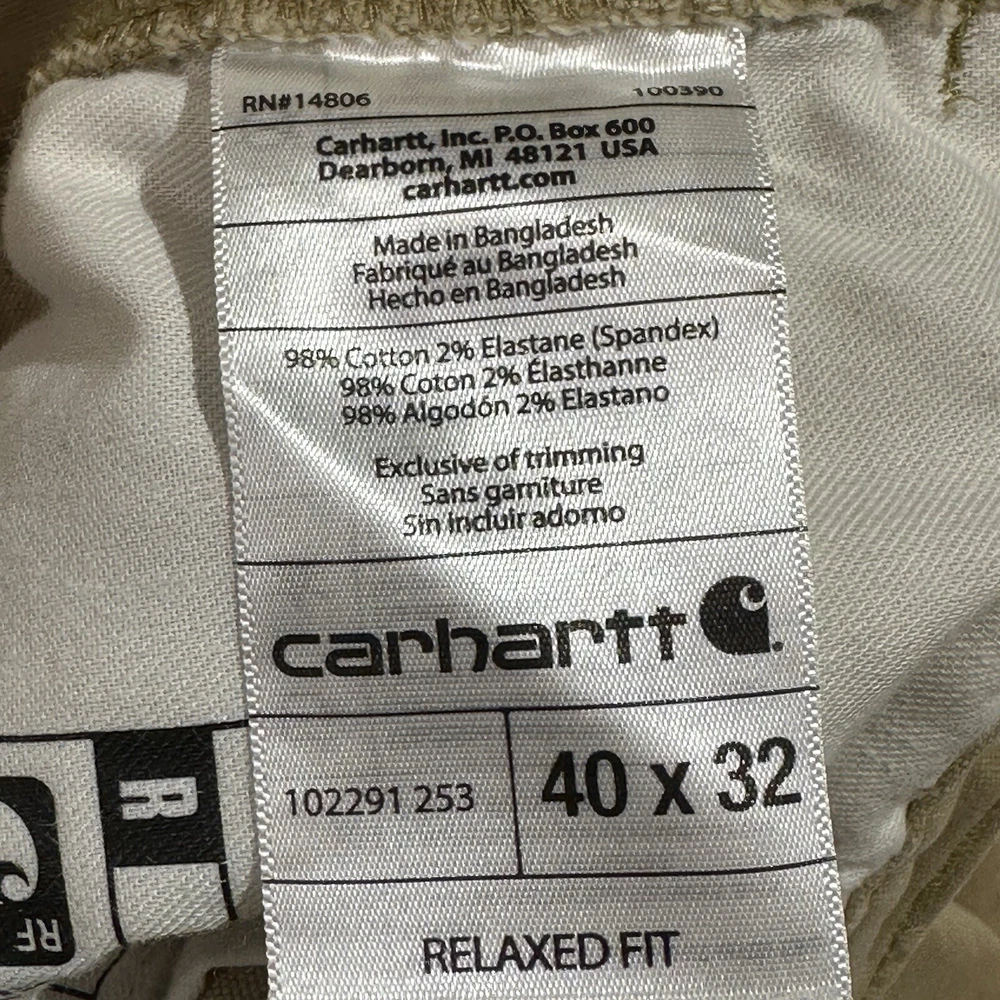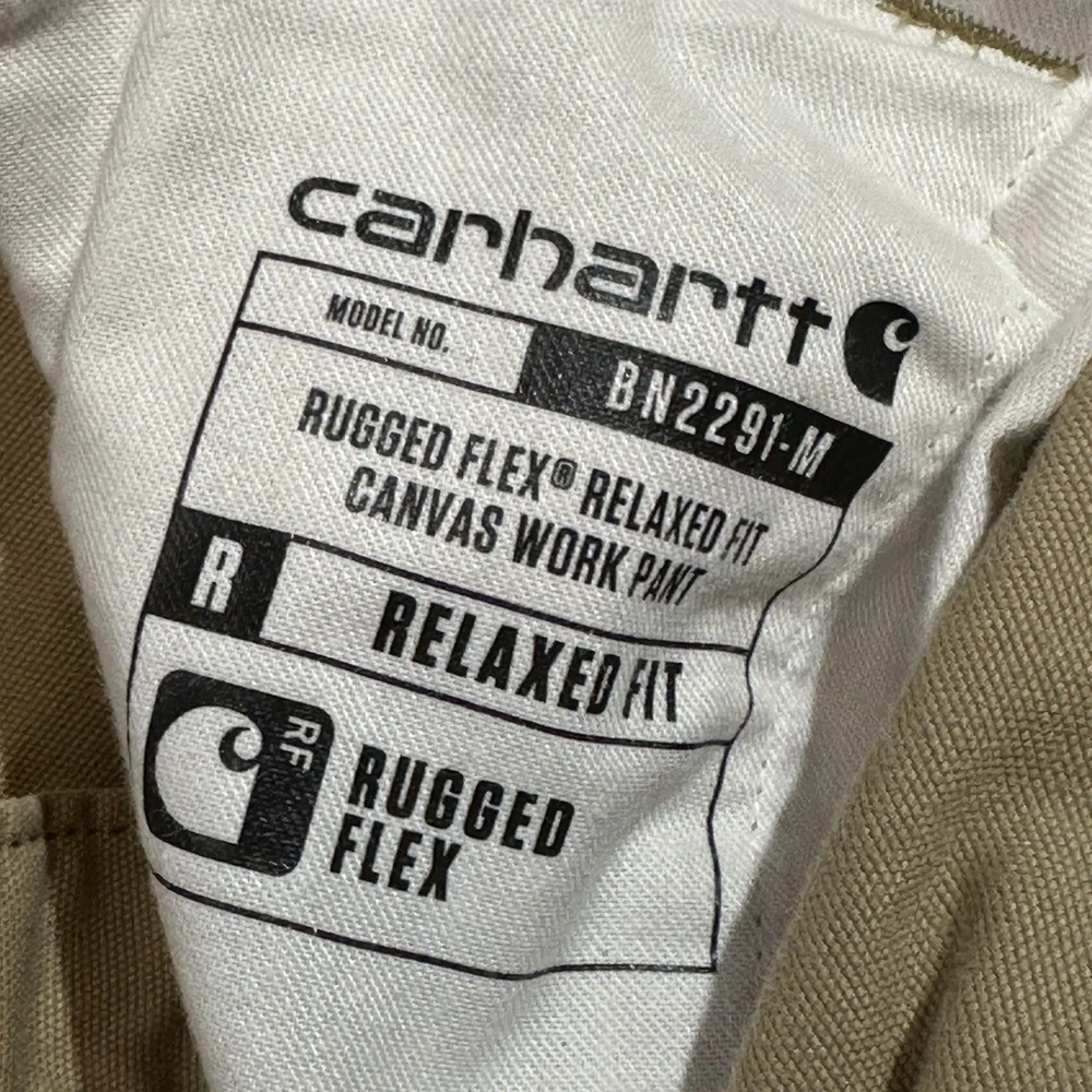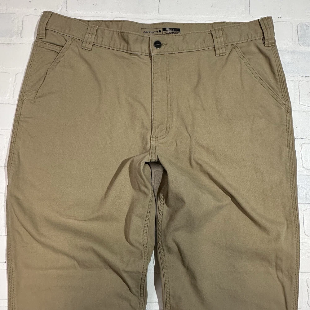 CARHARTT Mens 40x32 Rugged Flex Relaxed Fit CANVAS 5-POCKET WORK PANT - Khaki Brown Seller does NOT accept returns. See photos for measurements & flaws. Sizes vary depending on manufacturer & era. Please review item description, flaws & sizing prior to purchasing.