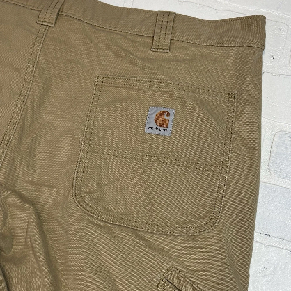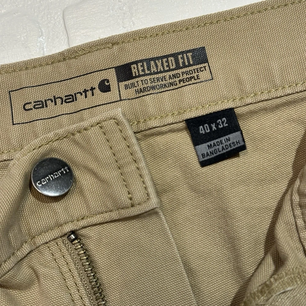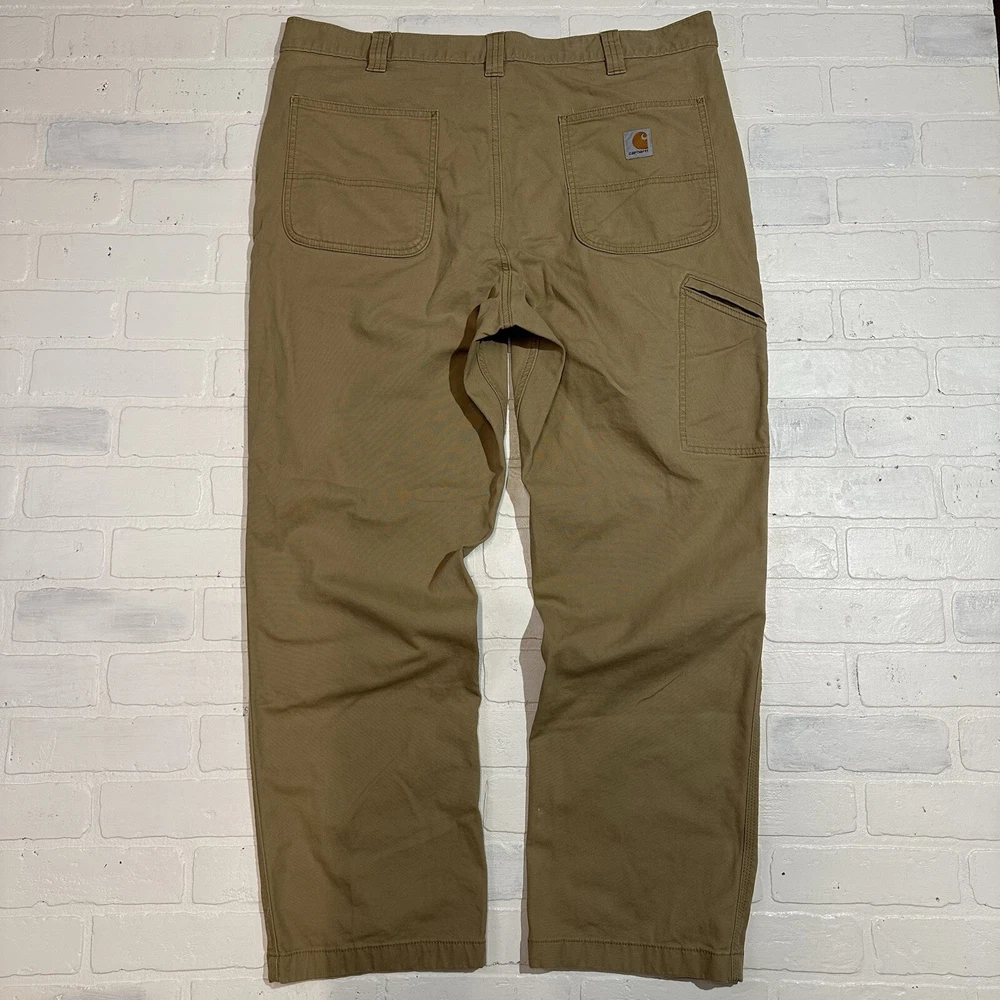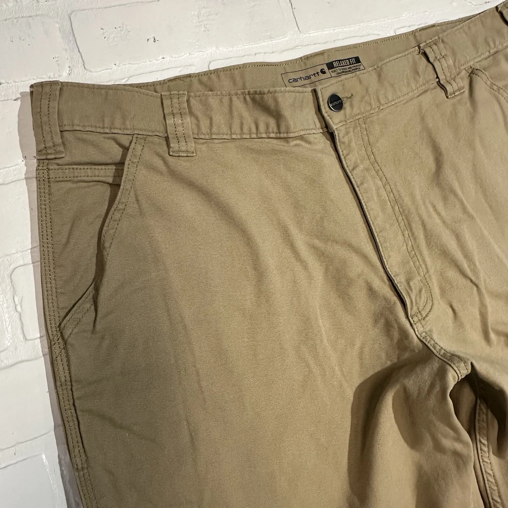 CARHARTT Mens 40x32 Rugged Flex Relaxed Fit CANVAS 5-POCKET WORK PANT - Khaki Brown Seller does NOT accept returns. See photos for measurements & flaws. Sizes vary depending on manufacturer & era. Please review item description, flaws & sizing prior to purchasing.