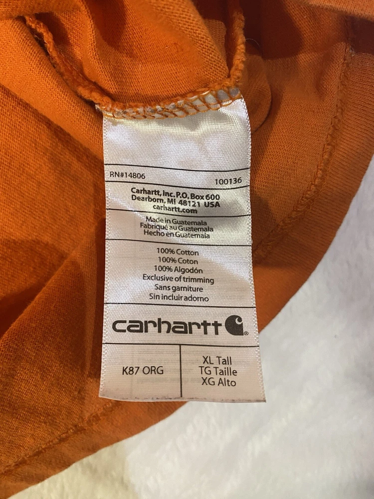 Men’s XLT orange Carhartt T-shirt. In good preowned condition!