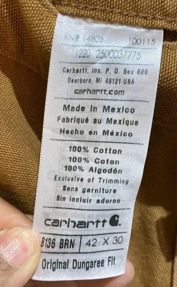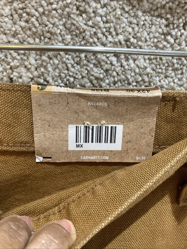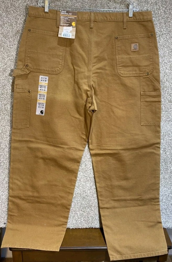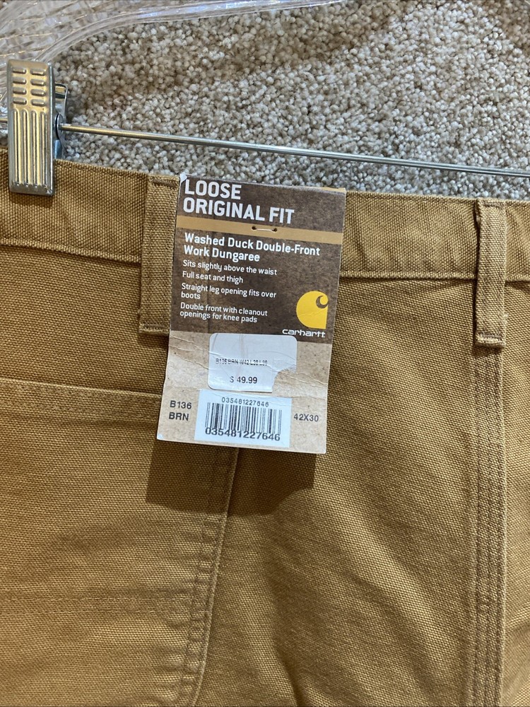 Carhartt Mens Canvas Double Knee Work Dungaree Pants B136 BRN Size 42X30 NWT. Ships USPS Ground Advantage. BN88