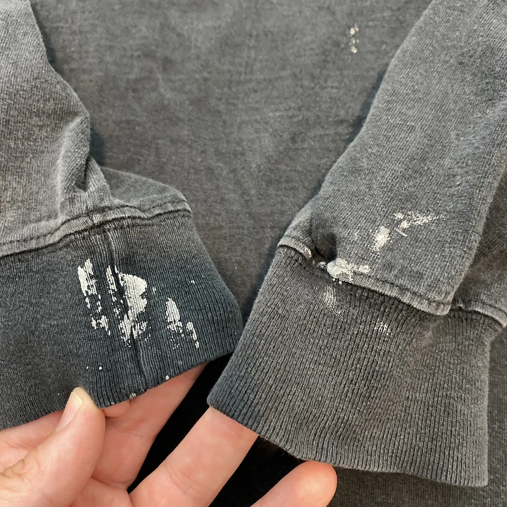 Shirt is in very distressed condition. See all pictures for measurements and conditioning feel free to ask any questions. We do our absolute best to try and document and photograph any flaws in the items, in case we miss something we are happy to accept returns. 60 day returns on all clothing items, for any reason. All returns are free to you, but expensive to us so please review the measurements prior to purchase. Item measurements are approximate and located at the end of the photos. Pre-owned clothing sizing can change due to washing and wear. Offers can not be combined with coupons. All Items will be shipped with a tracking # for your verification. Happy to combine shipping or send a partial shipping discount for multi item orders. We ship out daily, so you can expect fast delivery! If you have any questions at all please email us.