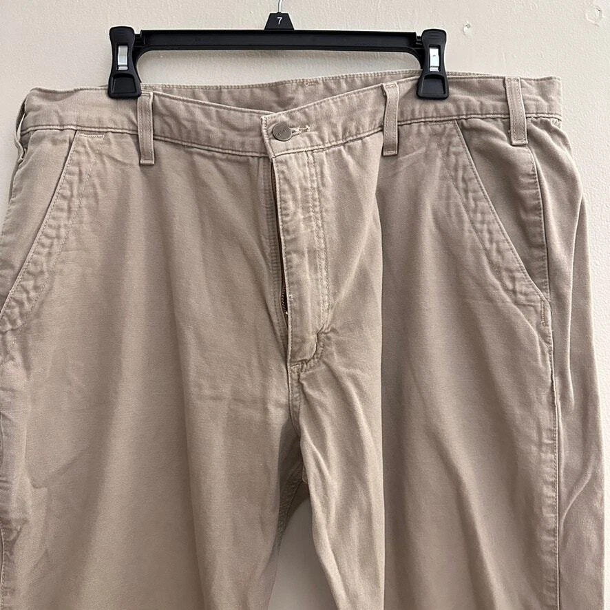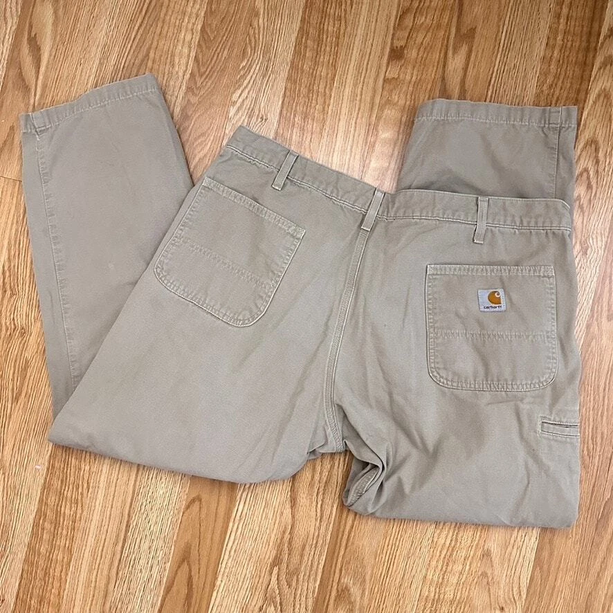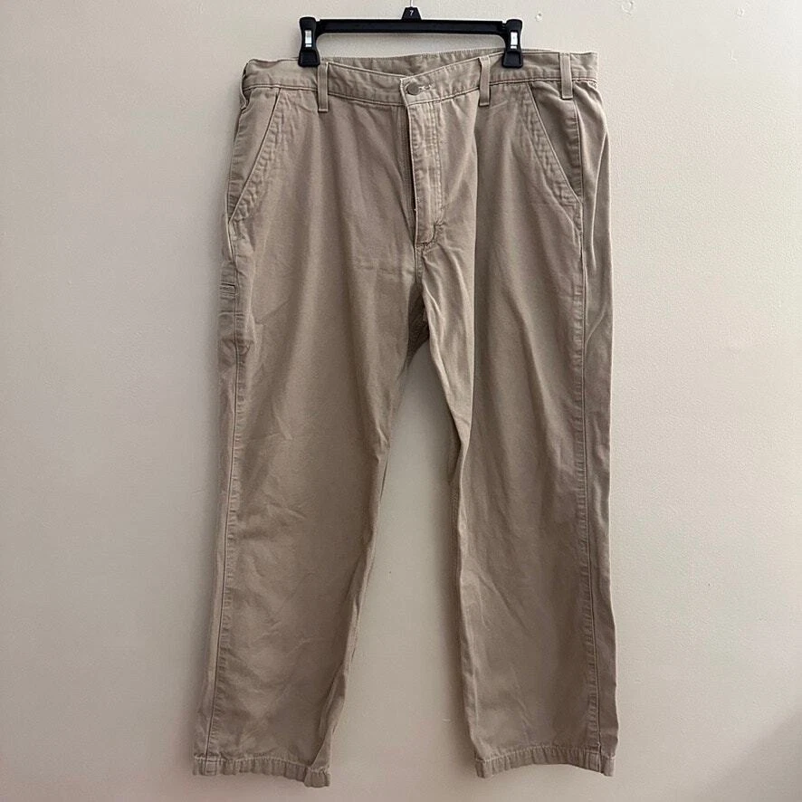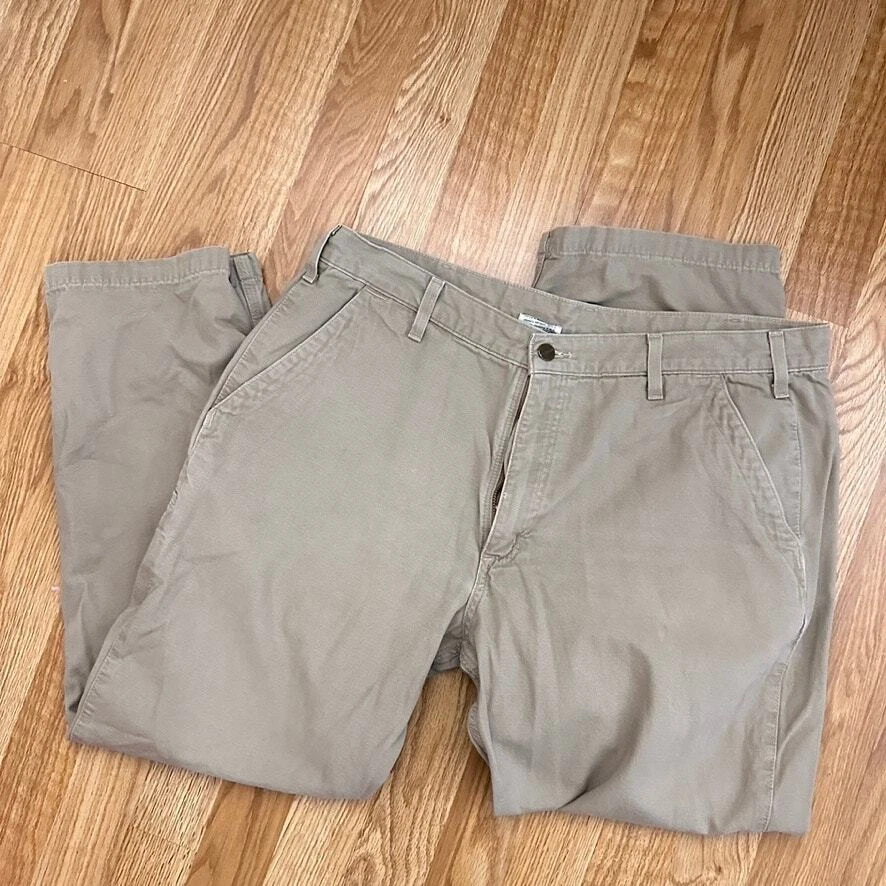 Carhartt Mens 40x30 Relaxed Fit Work Pants Cotton Twill Khaki Preppy Casual Size: 40x30 Approx. measurements: 40" across waist, 29" inseam Condition: Pre-owned good. Pre-loved and in gently used condition. Light wear. No rips or holes. One tiny light spot on the back of the pants. Please see photos. - see all pics for any wear/condition Actual colors may vary. We do our best to ensure that our photos are as true to color as possible. However, due to photographic lighting sources, inconsistencies of various monitors settings, we cannot guarantee that the color you see accurately portrays the true color of the product. work, workwear, work wear, wear to work, classic, casual, preppy, streetwear