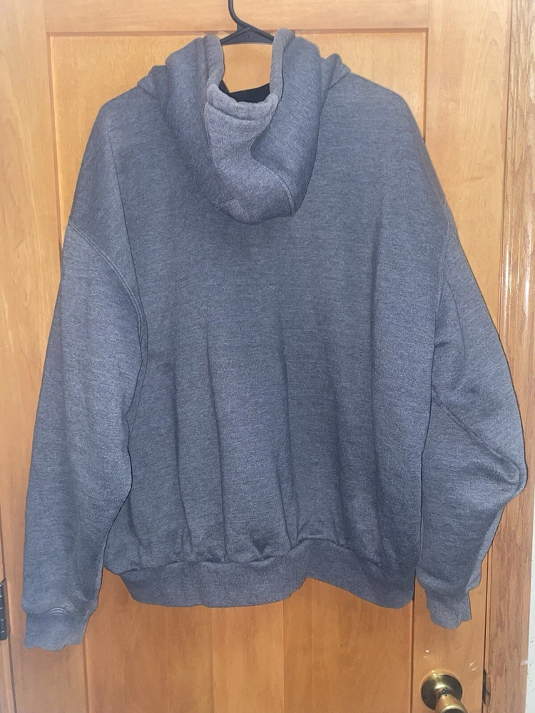 Stay warm and stylish with this Carhartt Men's Thermal Lined Rain Defender Zip Hoodie in Gray. Made of a comfortable blend of polyester and cotton fleece, this sweatshirt features a full zip closure and long sleeves to keep you cozy during the colder seasons. The hoodie also has a Carhartt logo accent on the front and a zipper closure for added style. Good condition Signs of wear Pit to pit: 31 inches Length without hood: 29 inches Sleeves: 25 inches Shell: 55% cotton and 45% polyester Lining: 100% polyester Polyester fleece lining for warmth Rain Defender® durable water repellent (DWR) keeps you dry and moving in light rain Loose fit Full-zip front with brass zipper Attached, thermal-lined three-piece hood with drawcord closure Spandex-reinforced rib-knit cuffs and waist help keep out the cold Two front handwarmer pockets with flaps for added security Hidden media pocket Inside pocket with zipper closure Locker loop Smoke-free home Perfect for outdoor activities like walking or gym training, this sweatshirt has a regular fit and is available in size 2XL. Its solid pattern and classic 90s theme make it a versatile addition to your wardrobe. Get your hands on this Carhartt product line and stay warm and stylish all year round.