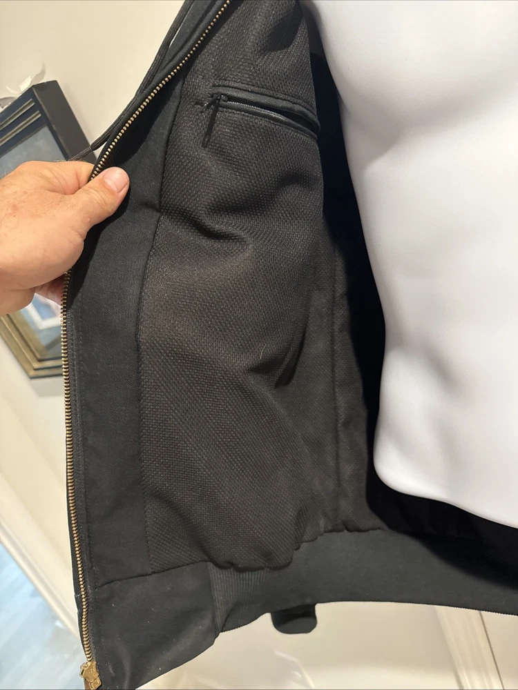 Very solid and heavy duty jacket. This item needs alittle washing and the zip gets caught where the pocket material goes over zipper but it works great