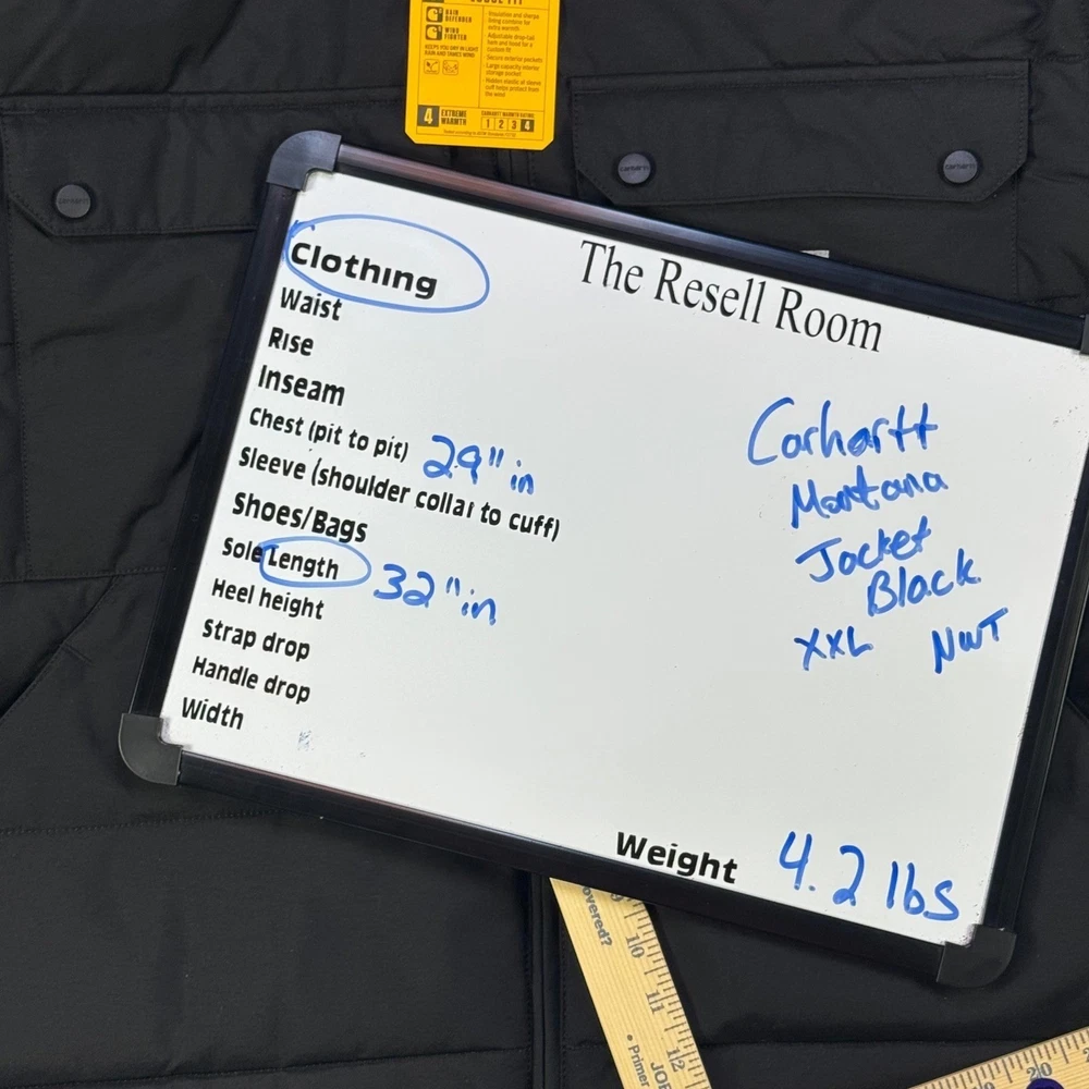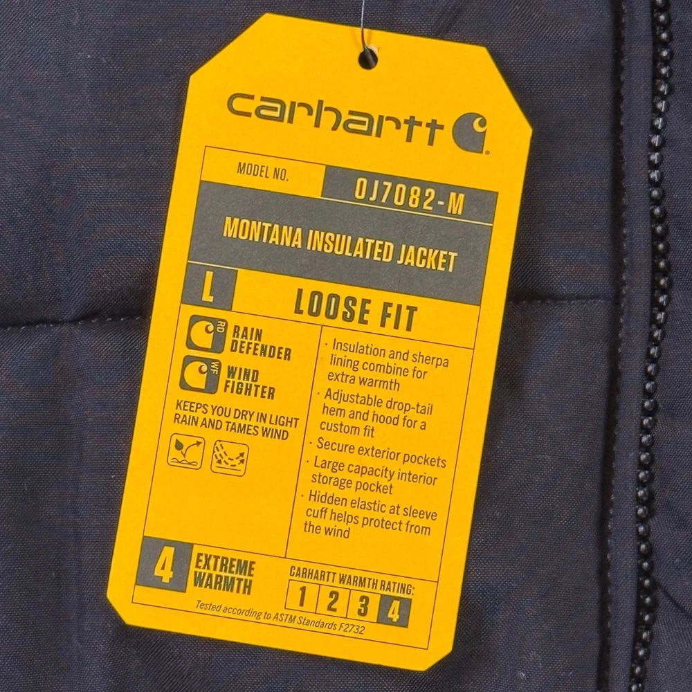 Carhartt Montana insulated jacket in black, brand new with tags. Heavyweight winter outerwear with hood and warm sherpa-lined interior for cold weather. Built with Rain Defender water-repellent tech and Wind Fighter protection, perfect for workwear, outdoor, and everyday winter layering. • Brand: Carhartt • Style: Montana insulated • Color: Black • Size: 2XL, chest 29 in, length 32 in • Material: Nylon, Polyester • Made in: Vietnam • Weight: 4.2 lbs Condition: New with tags, never worn Keywords: carhartt jacket, montana jacket, insulated coat, winter jacket, hooded coat, rain defender, workwear jacket, heavyweight coat, mens outerwear, black carhartt, sherpa lined, loose fit From a clean, smoke-free home. Packed with care. Bundle to save or send an offer—let's make a deal!