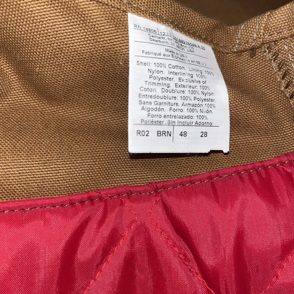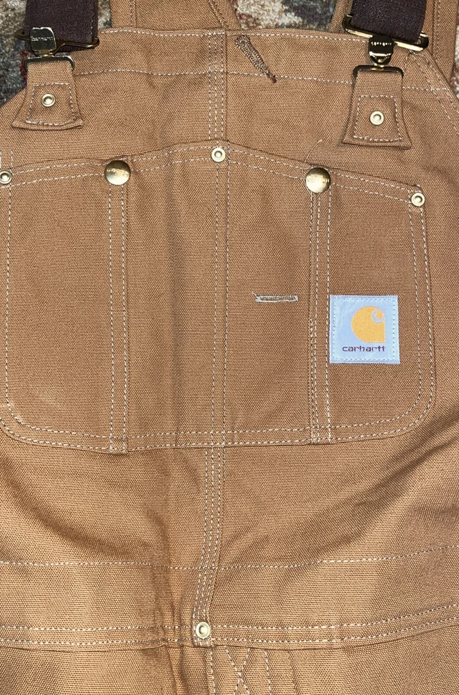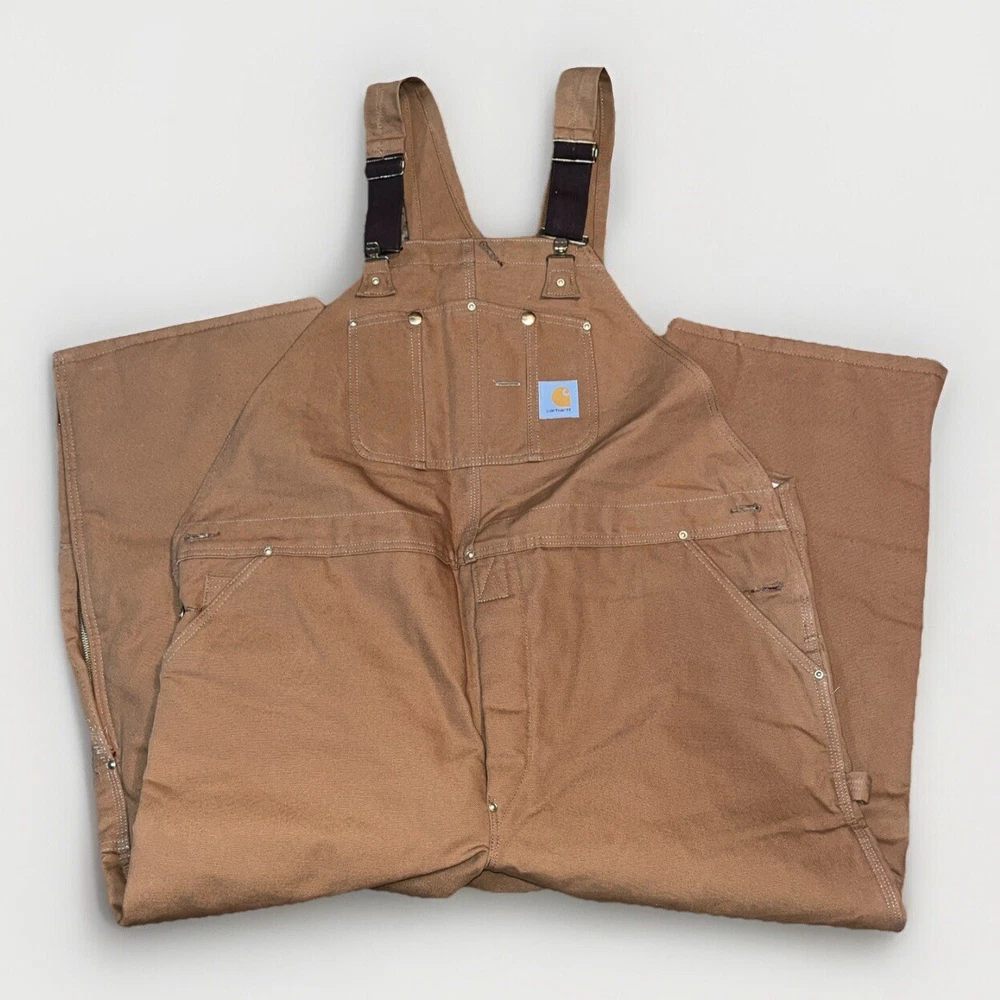 VINTAGE Carhartt Overalls Mens 48x28 Brown Canvas Quilt Lined R02 Made in USA