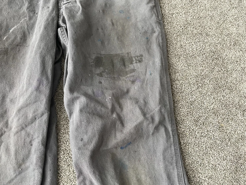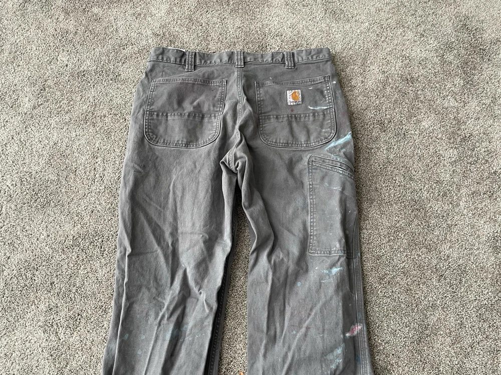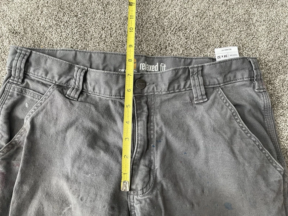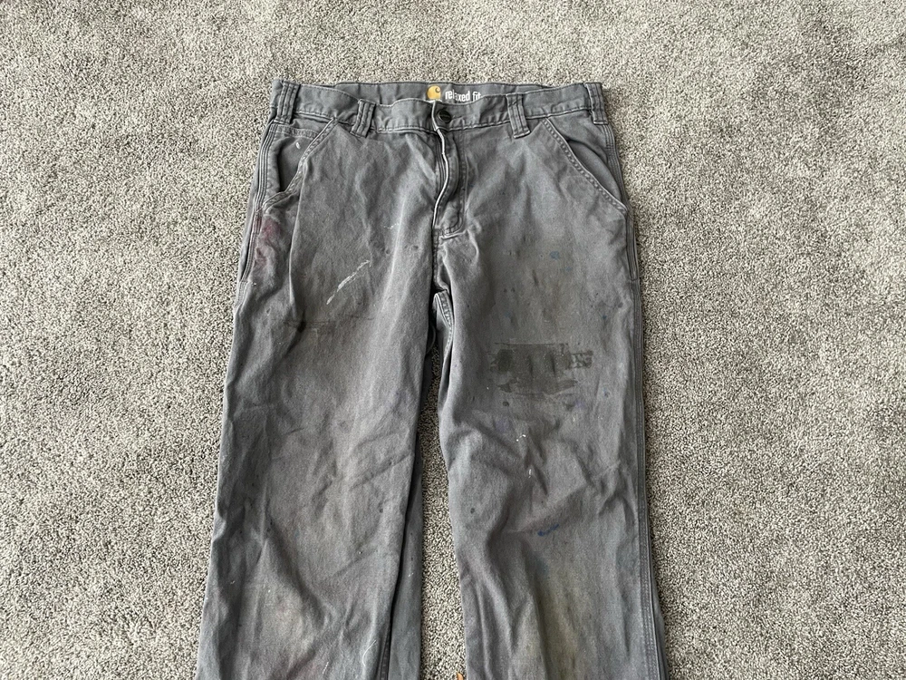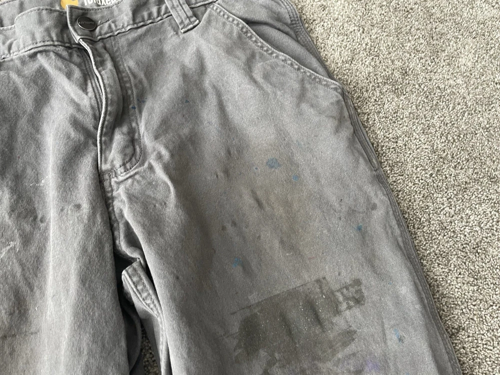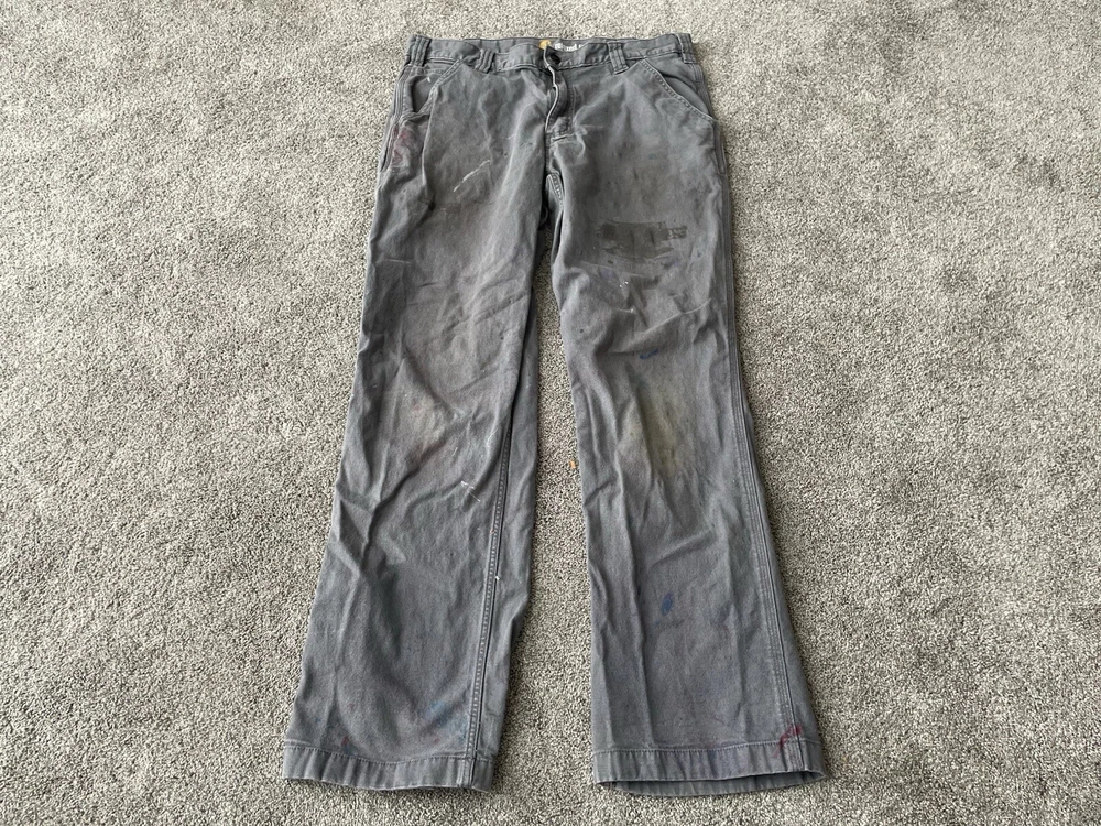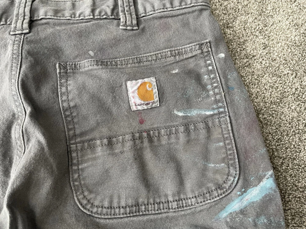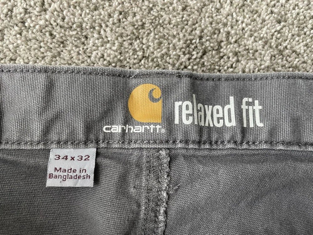 Upgrade your workwear with these Carhartt Painter Pants for Men. These pants come in a stylish gray color and have a relaxed fit for maximum comfort. They are made of a durable canvas material that can withstand any job and are machine washable for easy care. The pants feature a flat front with a button and zipper closure and have a five pocket design for convenience. The pants are perfect for travel, casual wear, and workwear. They are made in Bangladesh and are branded with the Carhartt logo. These pants are a great addition to any wardrobe and are perfect for those who work in the construction industry.