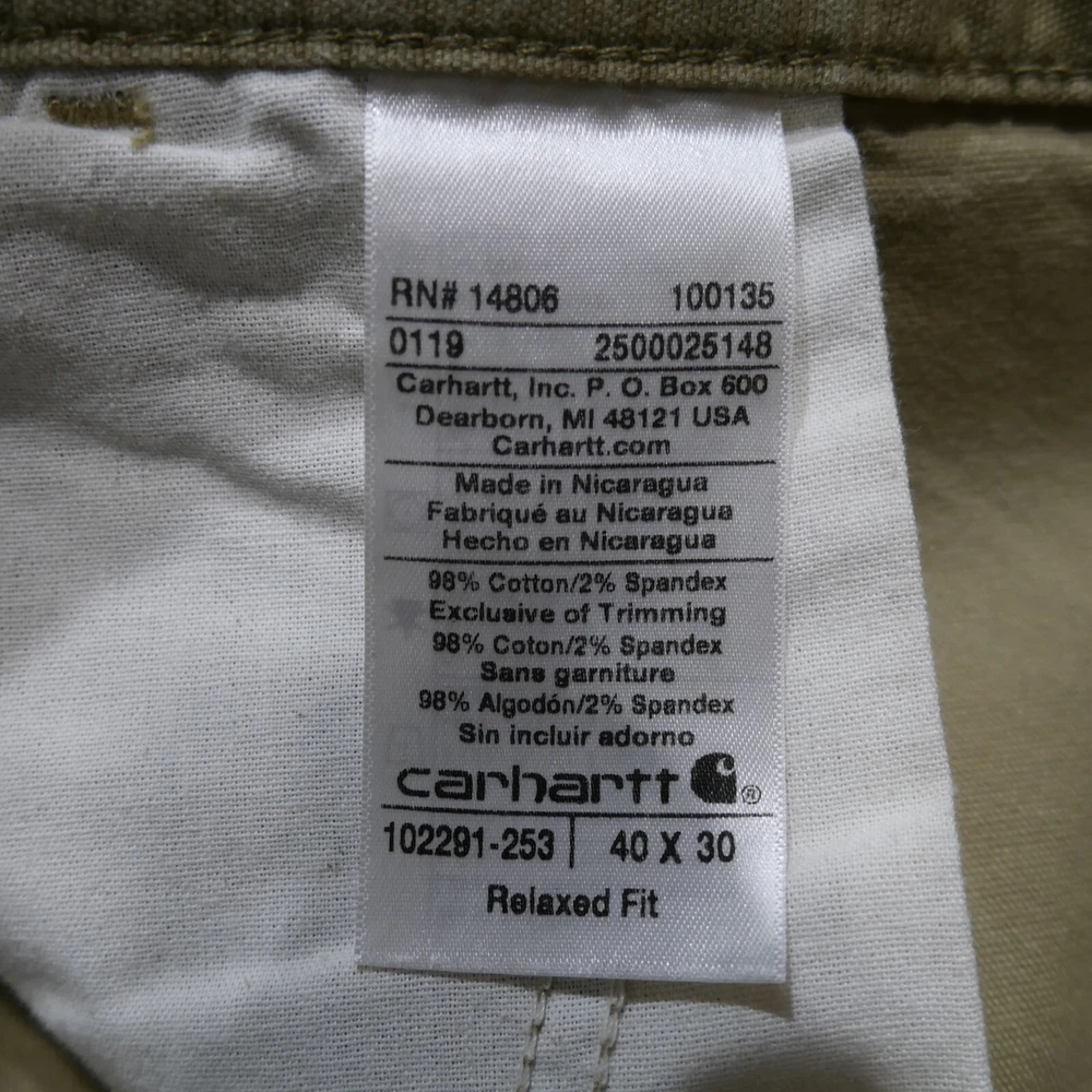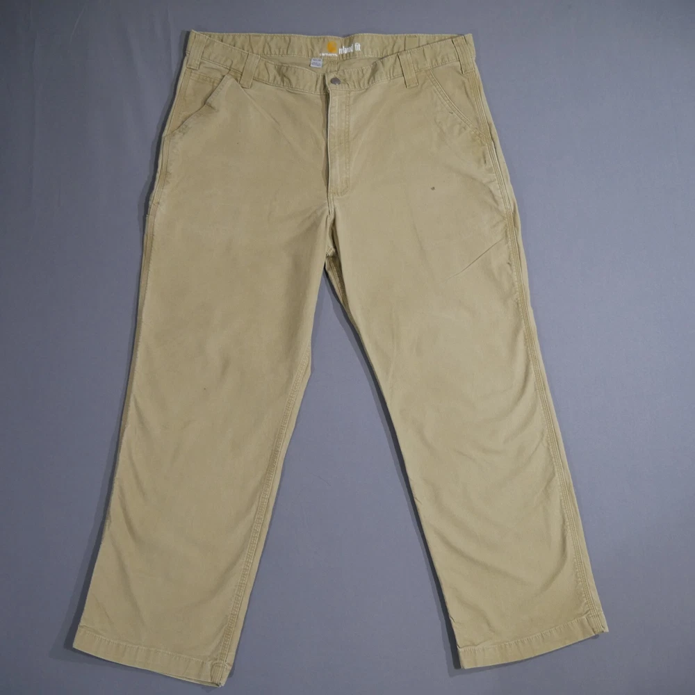 Carhartt Pants Adult 40x30 Rugged Flex Canvas Relaxed Fit Khaki 102291 253 Mens In Good Used Condition Does Have Some Stains See All Photos For More Details Measurements are approx. Please compare to some of your favorite garments for reference points. Color may vary due to photography lighting. We Post New Items Daily! Thank You For Looking At Our Listing! Waist - 39 inches Inseam - 29.8 inches