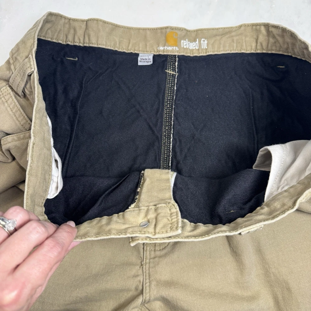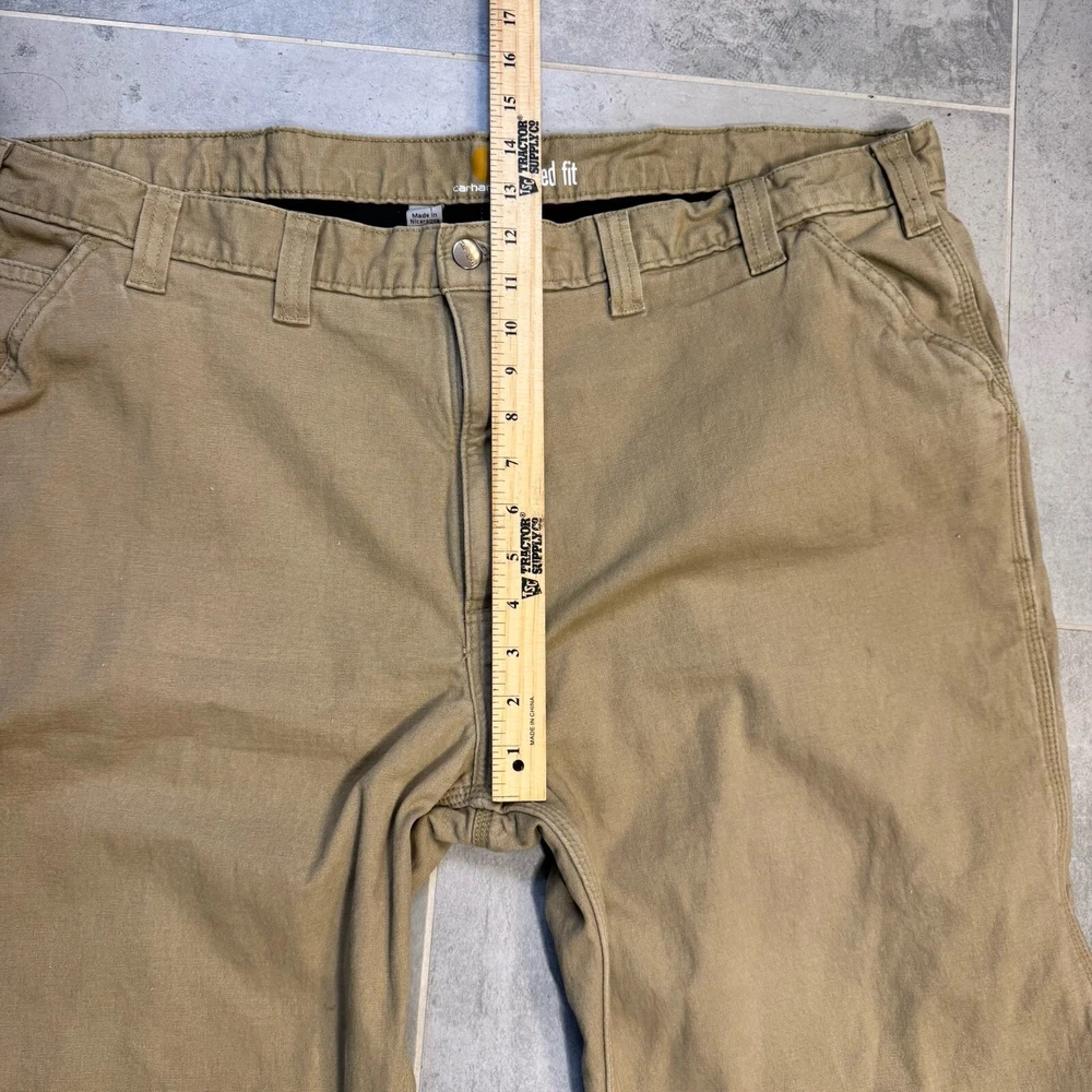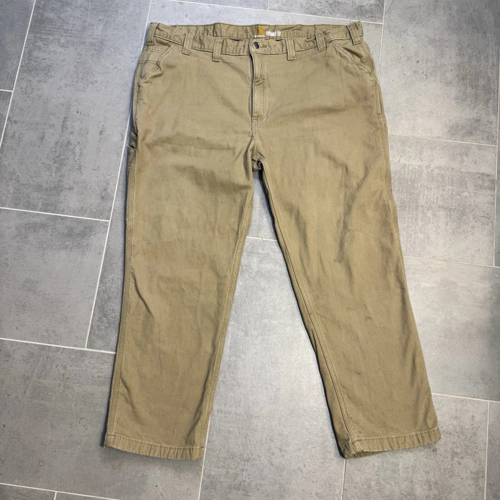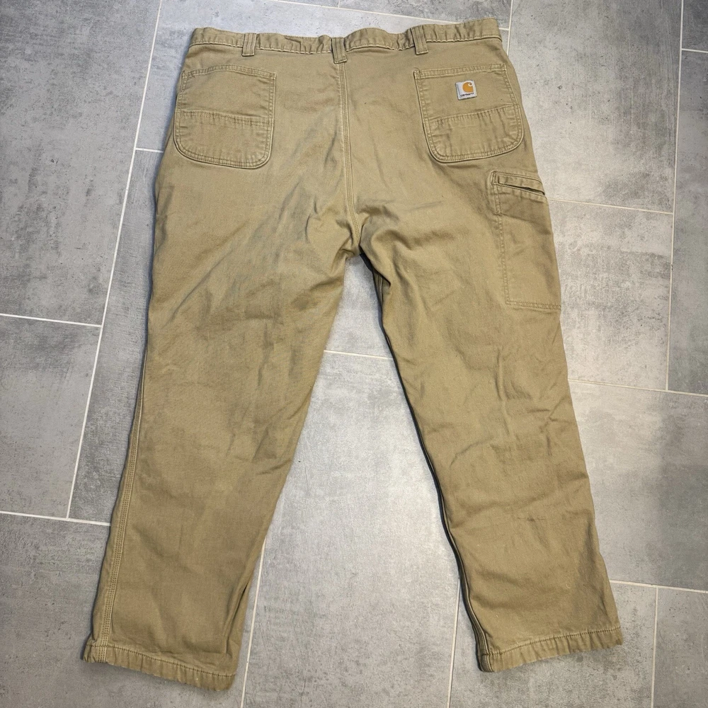 Carhartt Rugged Flex Rigby Fleece-Lined Carpenter Pants Men’s 44x30 Tan Winter Work Pants Stay warm and comfortable during colder months with these Carhartt Rugged Flex Rigby Fleece-Lined Carpenter Pants. Designed for durability and comfort, these pants are ideal for work or casual wear in winter conditions. Very good preowned condition with no significant flaws. Care tag is missing, but size tag is intact. Details: Brand: Carhartt Style: Rugged Flex Rigby Fleece-Lined Carpenter Pants Color: Tan Size: 44x30 (actual measurements: 45x29) Material: Fleece-lined for extra warmth Features: Durable construction: Triple-stitched seams and YKK zipper Fleece lining: Perfect for cold weather Relaxed fit: Provides comfort and ease of movement Utility-focused design: Classic carpenter style with plenty of pocket space Approximate Measurements (Laid Flat): Waist: 22.5” Inseam: 29” Rise: 12.5” Leg Opening: 9” Condition: These pants are in very good preowned condition, showing light wear consistent with previous use. Perfect for winter work or outdoor activities. Ships quickly from a smoke-free home. Feel free to ask any questions before purchasing!